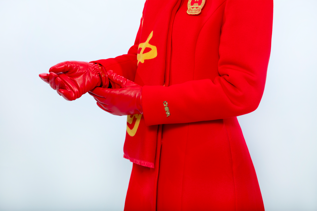 中国代表团礼仪服饰主题为“中国风采”,结合开幕式的时间、空间、气候等因素,自然地与中国春节吉祥喜庆的气氛相结合,将传统文化与奥运相辉映,传递中国特色、中国气派。