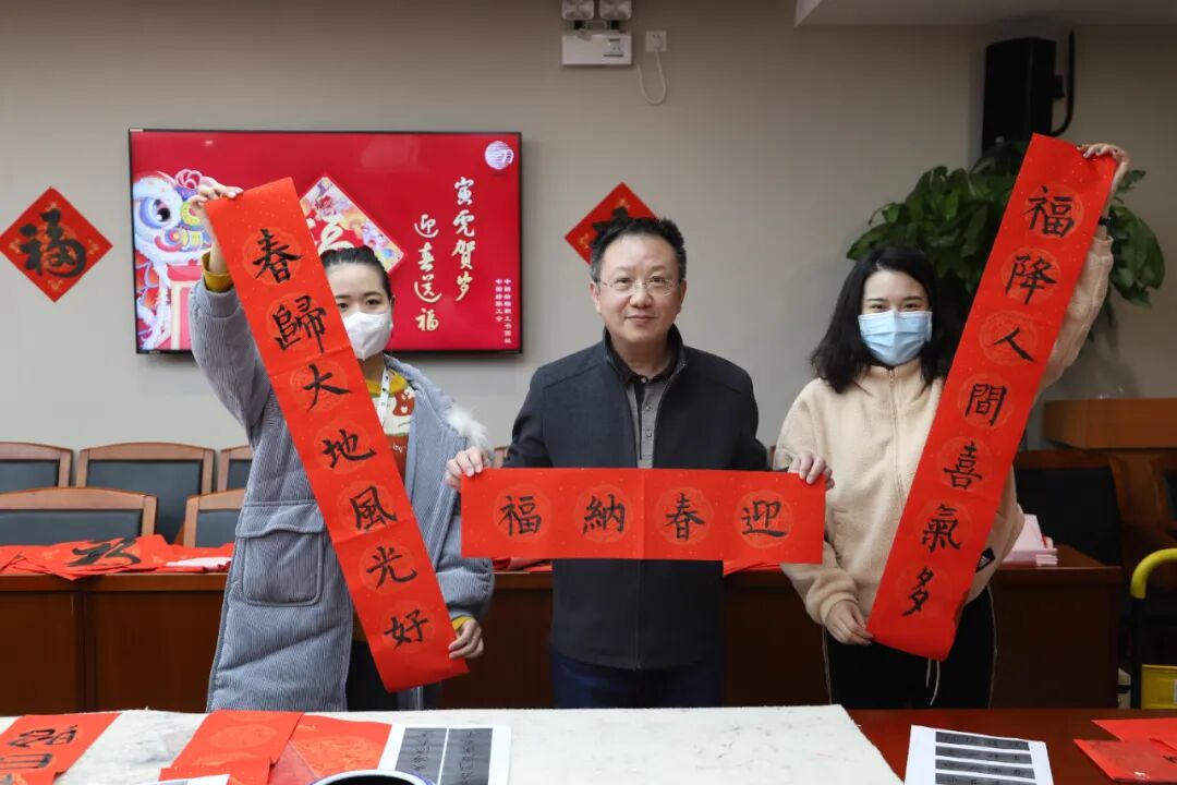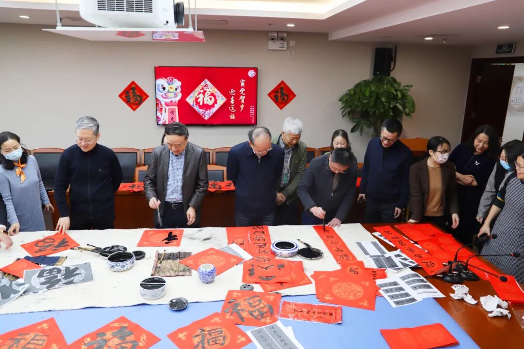 1月28日上午,中国纺织工业联合会开展了“寅虎贺岁•迎春送福”活动。中国纺联党委书记兼秘书长高勇,副会长夏令敏,党委副书记陈伟康,纪委书记王久新,副会长徐迎新、陈大鹏、李陵申、端小平、杨兆华、孙淮滨等领导同中国纺联工会委员、中国纺联书画联谊社社员及干部职工代表一起写春联、写福字、送祝福,共同迎接壬寅新春佳节,向中国纺联全体干部职工和全国纺织行业2000万纺织人送上新春祝福,祝福祖国繁荣昌盛,美丽富强。