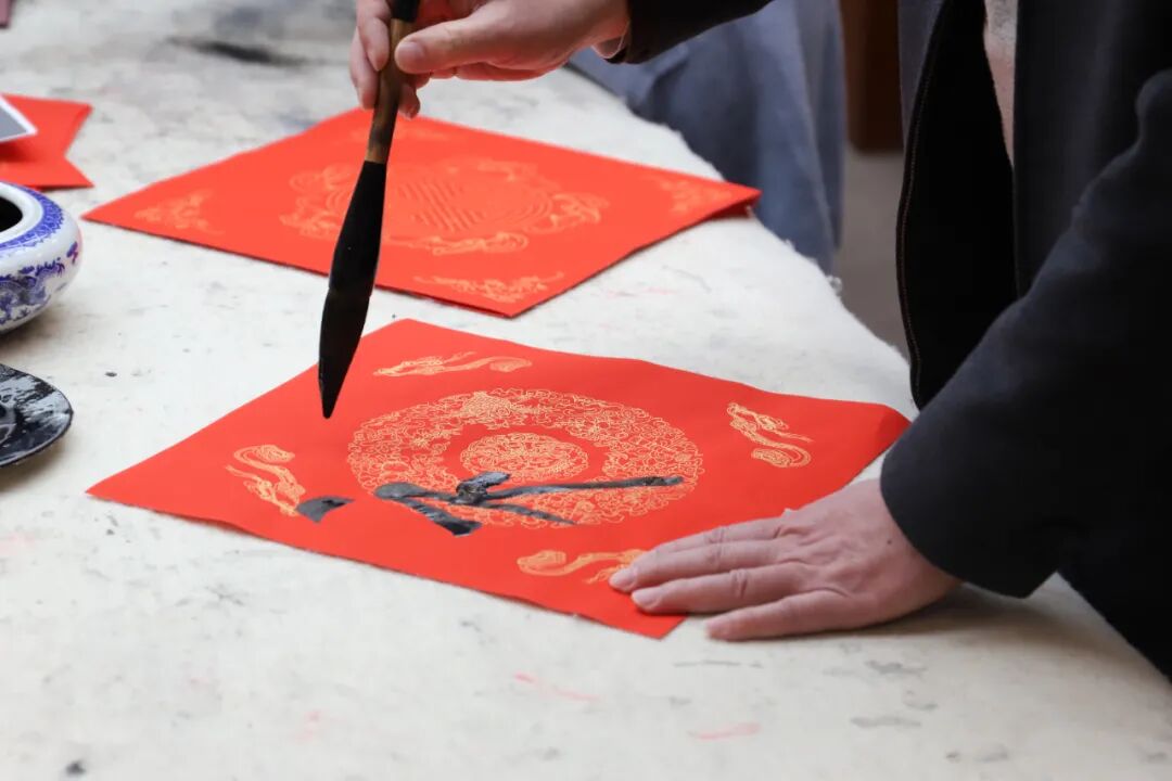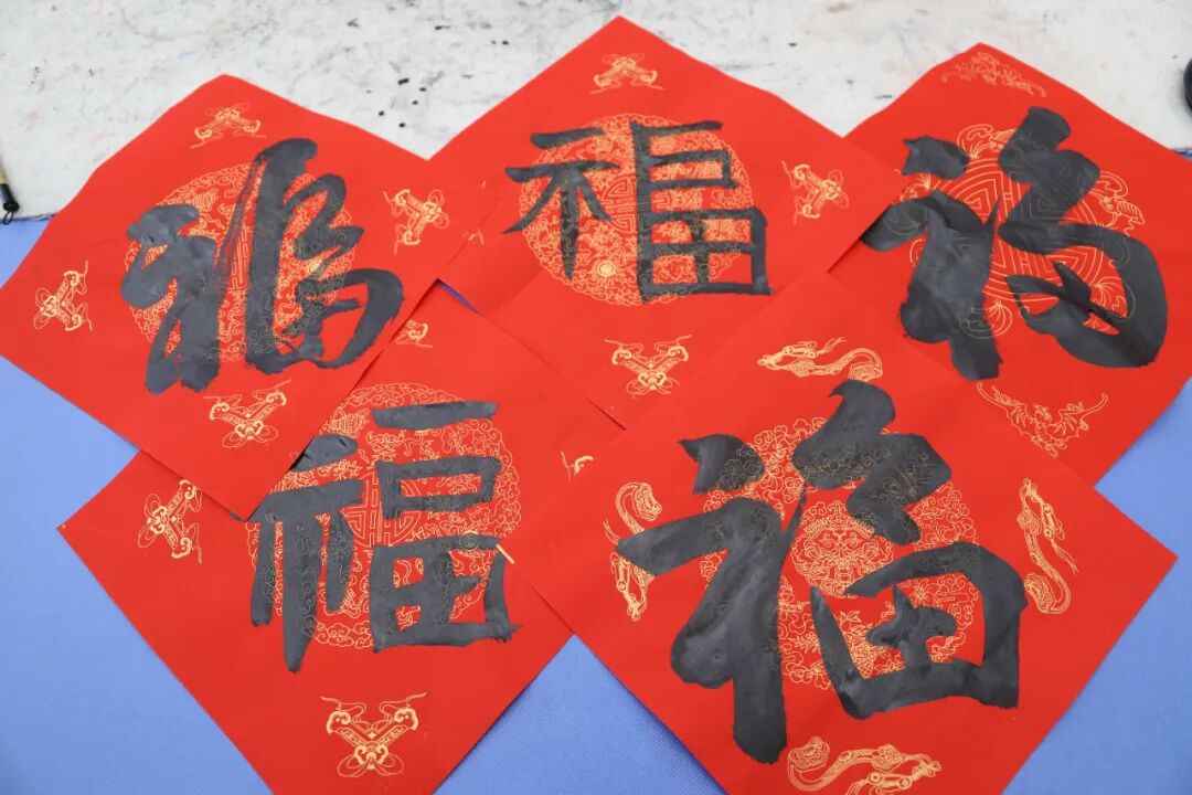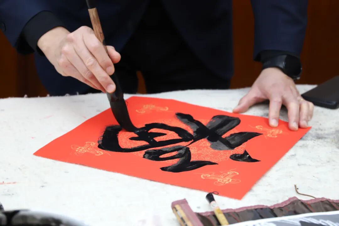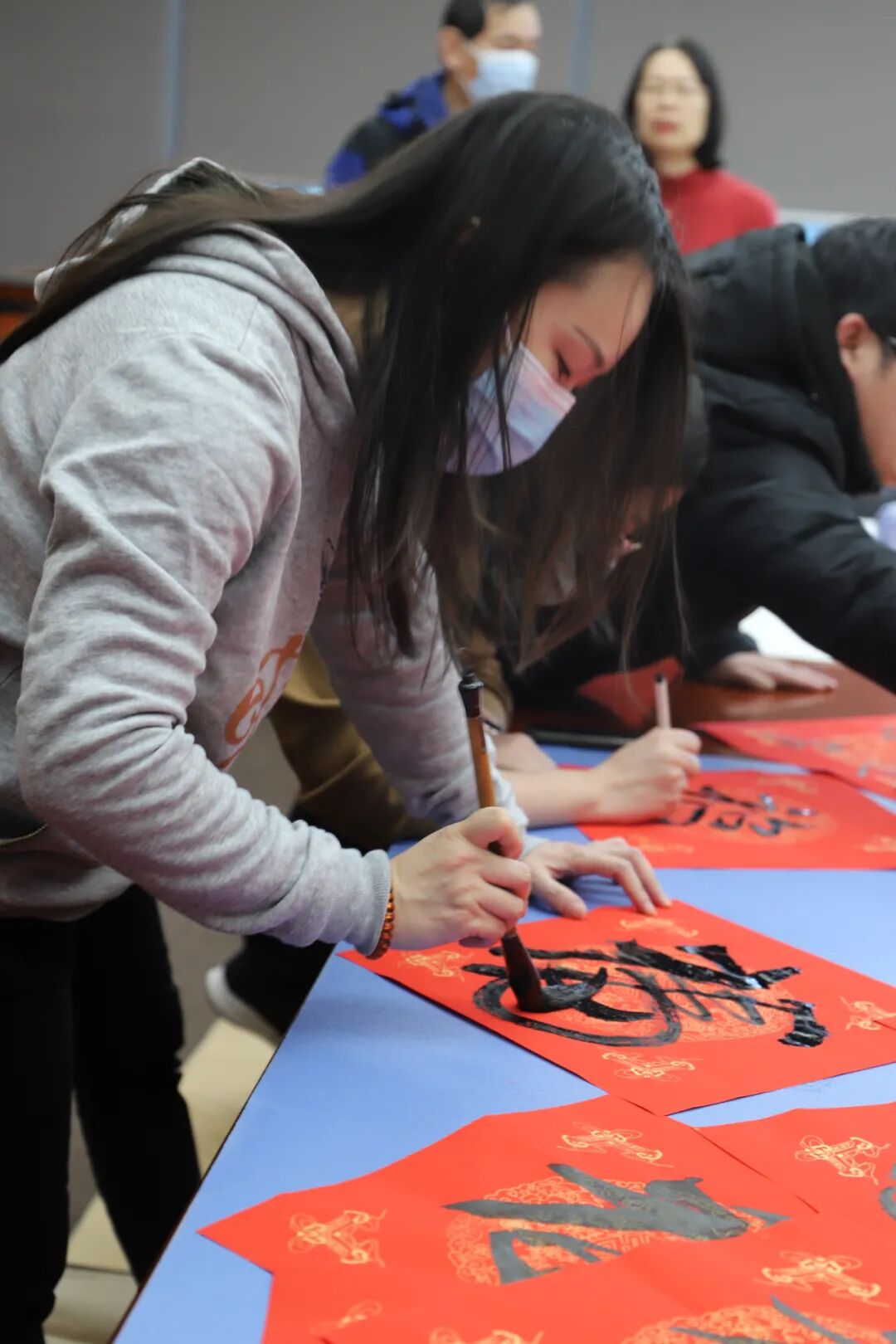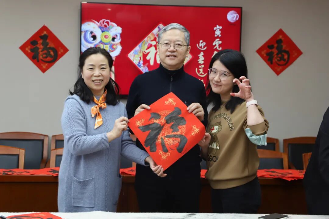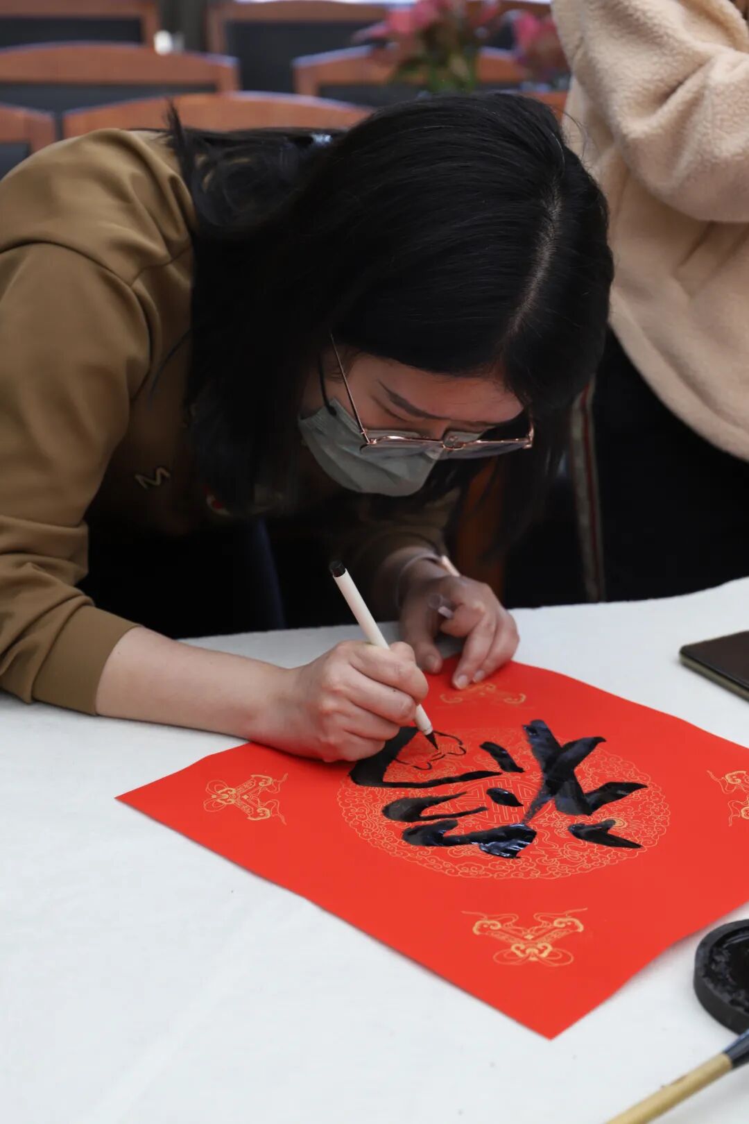 中国纺联人保办公区第一会议室翰墨飘香,红福溢彩,熠熠生辉。真、草、隶、篆、行五体书法的福字,对仗工整、寓意吉祥的楹联彰显着中国纺联“联合舰队”大家庭的团结与活力,活动现场阵阵的欢声笑语传递着喜庆的节日气氛。在热烈的气氛中,开始了“点福送福”环节,领导们手持毛笔,点福写福,将活动推向高潮。一幅幅福字、一对对春联,代表着中国纺联领导、工会、书画社同仁对中国纺联全体员工的新春祝福,祝大家在新的一年里身体健康、事业有成、家庭幸福,祝纺织行业战胜疫情、虎虎有生气!作为中国纺联一年一度的文化建设品牌活动,本次活动由中国纺联工会和中国纺联书画联谊社联合举办,旨在即将迎来壬寅春节的美好时刻,深入贯彻以习近平同志为核心的党中央一系列重要决策部署,推动中国纺联文化建设,继续发扬中国纺联“联合舰队”精神,激励中国纺联广大干部职工振奋精神、守正创新、勇毅前行,以饱满的热情投入到建设纺织行业“十四五”高质量发展的火热实践中,以优异的成绩迎接党的二十大胜利召开。
