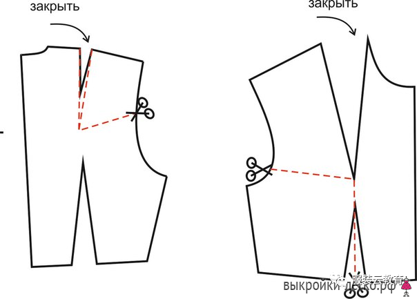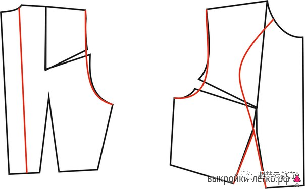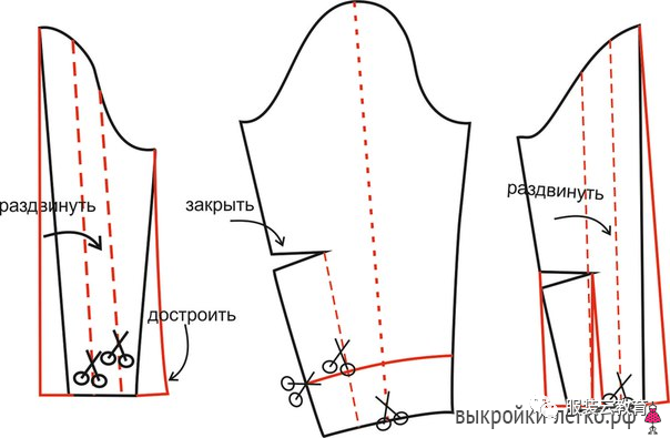 通过延长衣袖前部的配合量,将部分受力的抽出物打开到衣袖内。其余的,大部分都转移到腰部以下(如果抽出液大,抽出部分可以转移到侧缝,但在这种情况下,衣服的侧件最好变得不透明,因为。原件没有规定穿内衣,而如果胸围尺寸大,这是不可能的)。让我们把模型线涂在架子上,不要忘记只有我们的中心部分不透明……