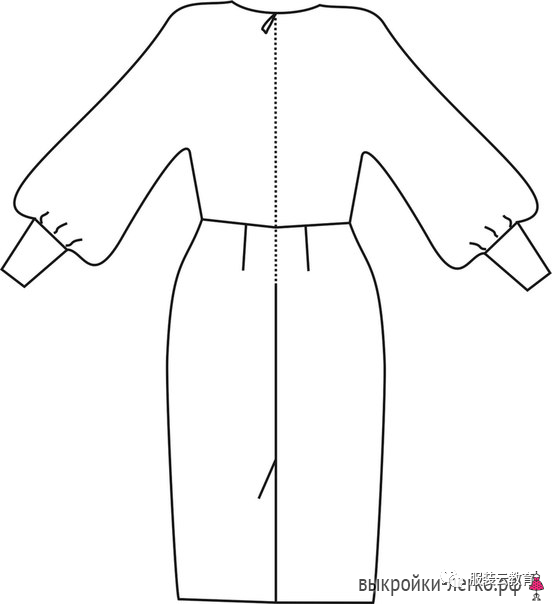 连衣裙,大身原型,带全包复盖的袖子,延伸到底部,贴在高袖口上。裙子向下扭曲,长在膝盖以下。靠背中缝拉链。开始制版吧。首先,我们需要一个原型,一个单缝的袖子。
