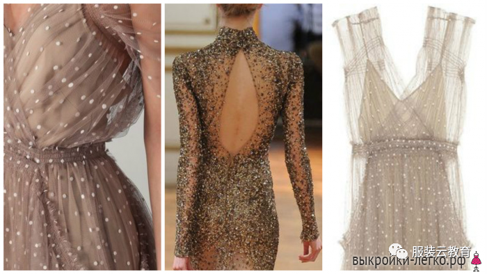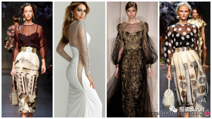 勇敢点...是的,每个人当然都会遇到挫折,会从别人的错误中学习,并利用自己的全部经验、奇迹和品味,在任何情况下都显得有尊严和有吸引力。尽管如此,透明连衣裙的潮流是不容置疑的。设计师们真的很喜欢使用失重的密码、细胞器、花边。而且看起来绝非粗俗,而是令人钦佩。透明的背、手、贴花在浪漫约会、世俗或节日活动、海边、夏季公园散步的晚间照明中看得很尽兴。但是,在工作中,尤其是在办公室,在任何情况下都应该避免这种打扮。