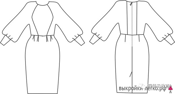 下面来分析下今天要学习的修身绸连衣裙,它有透明袖子、靠背和胸罩的侧面部分,这要求女主人有一些勇气和自信,而且造型也很苗条。对于非常想穿这种衣服,但又很恐怖的女人来说,有一个更封闭的选择,比如用另一个袖子复盖,胸罩的侧面也用丝绸做。现在看下基本礼服造型的款式图。