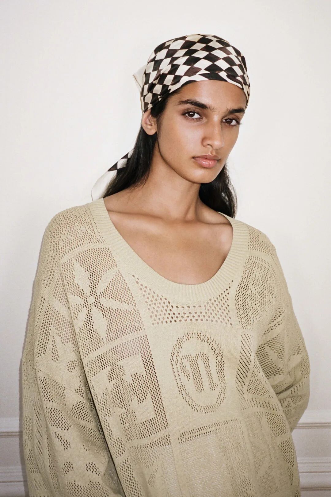 塑造商务休闲风格时,建议采用现代感棋盘格印花设计(见Nanushka)。