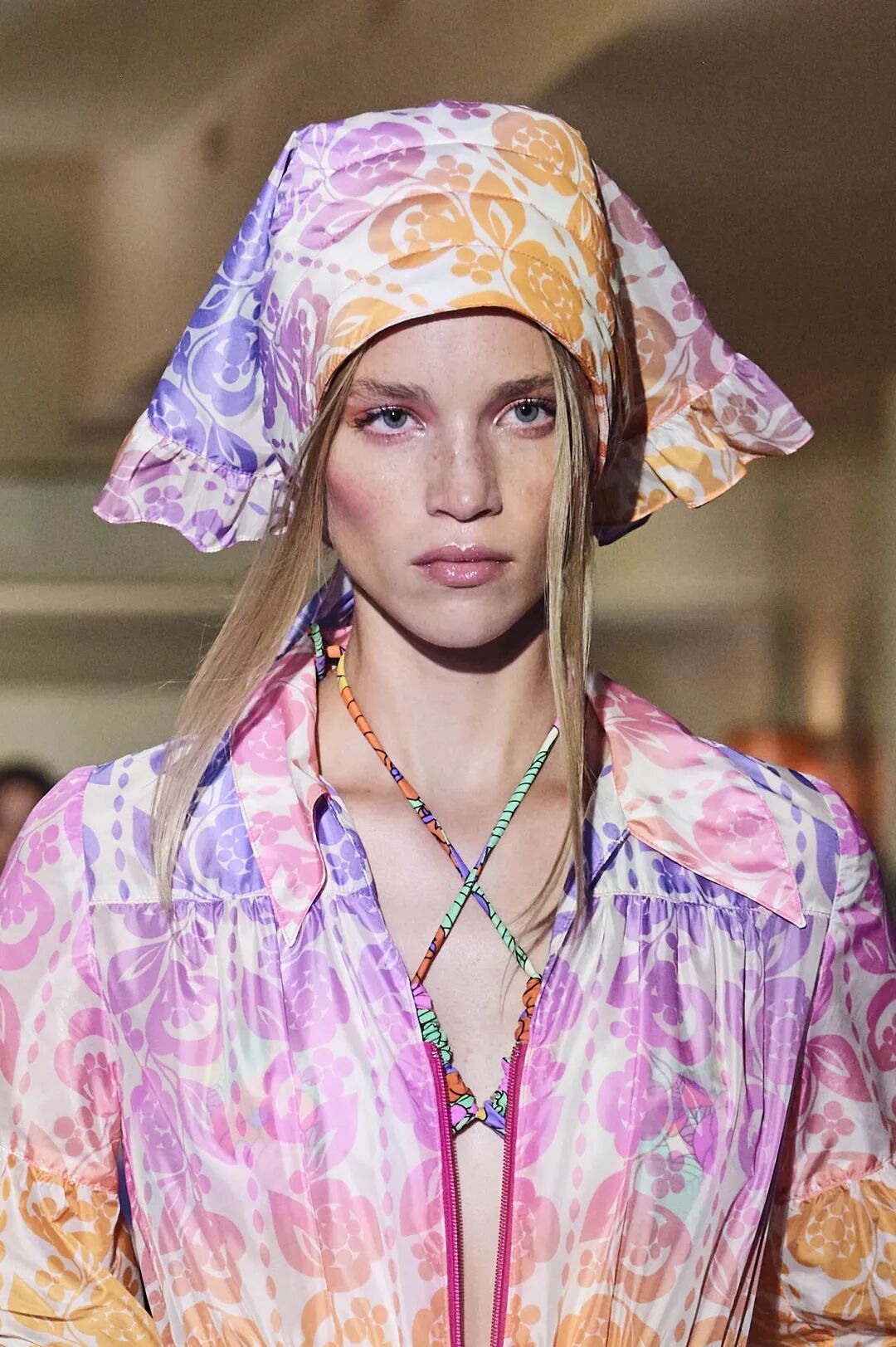 融合乐观情绪和复古质感,呼应活力度假主题,并设计套装以减少浪费(见Anna Sui)。