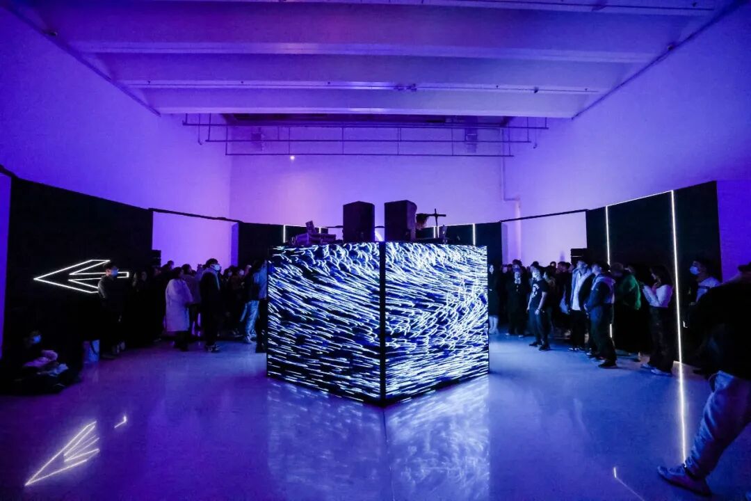 在艺术展现场,曾晨以《自我生成系列》,探索未来AI参与完成人类文明的重塑的样子;林万山发起艺术项目“宇宙呼喊计划”,以电磁波为介质,向地球之外进行宇宙广播;而电子音乐人 Anti-General 在展览开幕当晚带来了一场电子音乐表演。