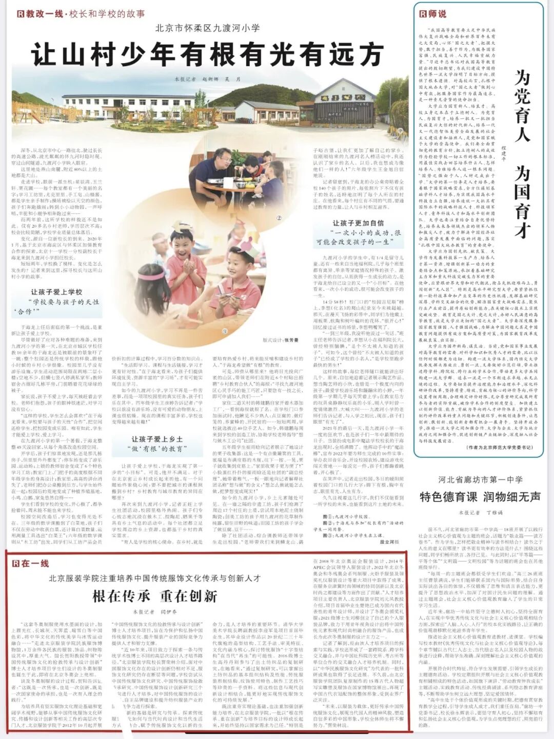 1月23日,《人民日报》刊发对北京服装学院博士人才培养项目的深度报道,题目为《根在传承 重在创新——北京服装学院注重培养中国传统服饰文化传承与创新人才》。