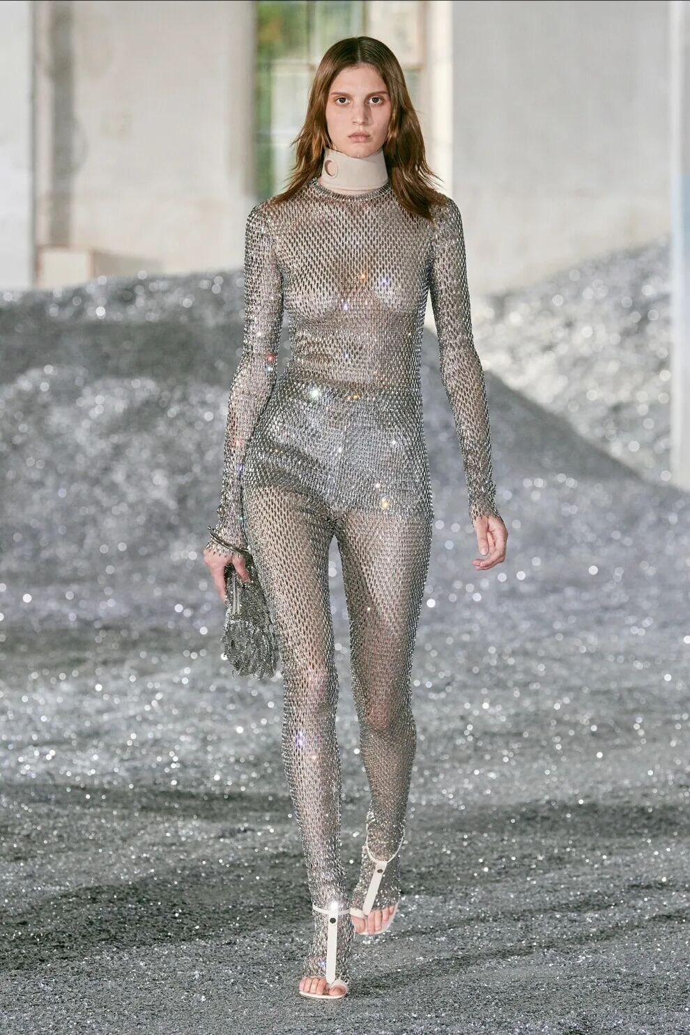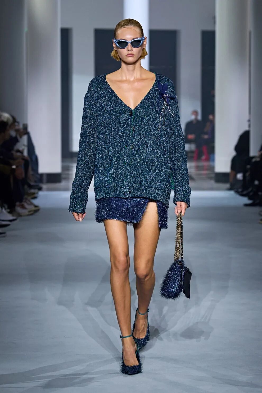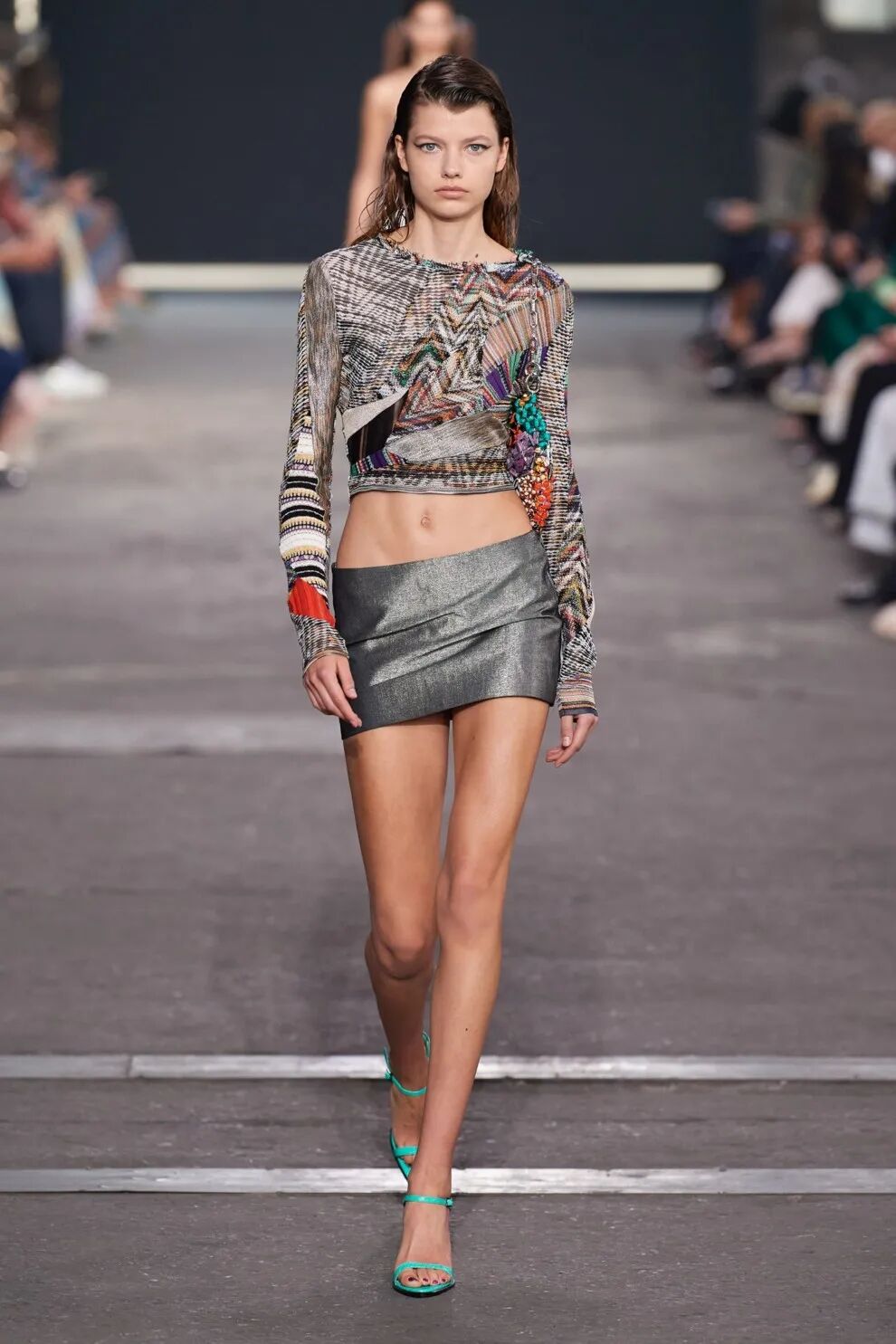 如果说迷你裙在 2021 年流行,那么在 2022 年,设计师们会认真地分散并推出了微型变体款式。Miuccia Prada 在她的 Miu Miu 2022 春夏系列中展示了最具挑逗性的短裙,设计师建议穿一件显眼的低腰半身裙搭配毛衣和衬衫。Christian Dior 秀场上出现了一条小花裙,Missoni系列中出现了金属版 。
