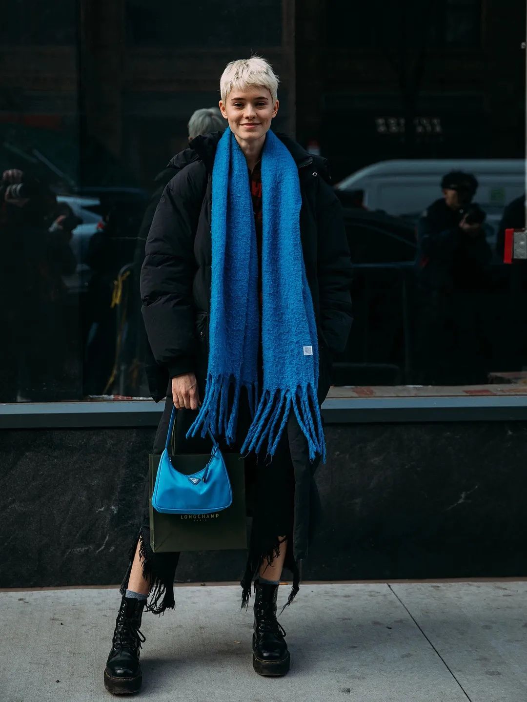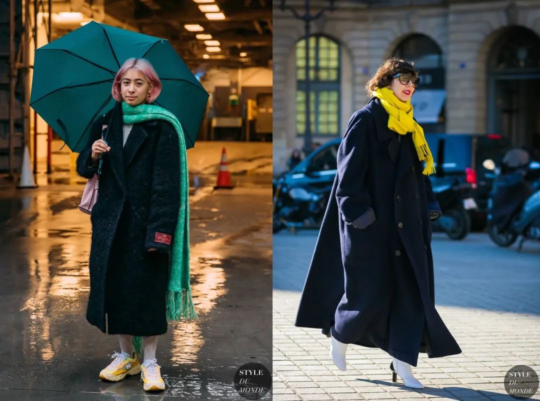 搭配亮色系围巾也能相当出彩!可以让你在人群中很出挑▼