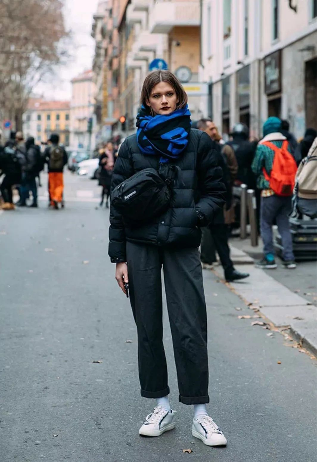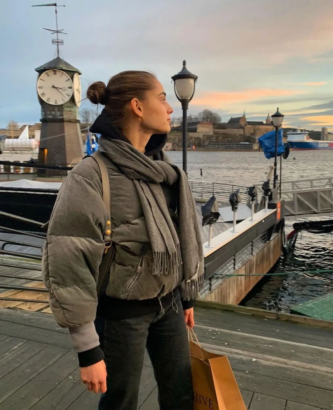 灰色可以说是老生常谈了,无论是披着佩戴还是卷起来,都很具有质感