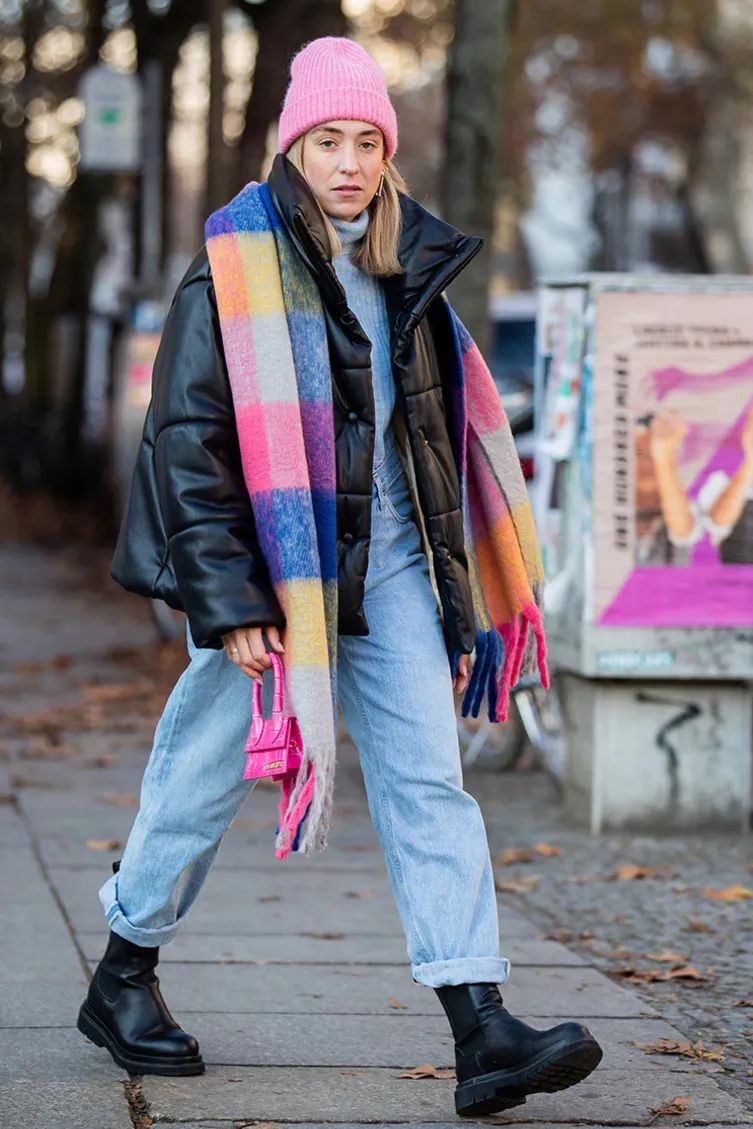 几种颜色的拼接条纹围巾本身就很有看头,在挑选围巾样式的时候,不妨参考这种超长款的大围巾,保暖的同时非常提升个人气质!