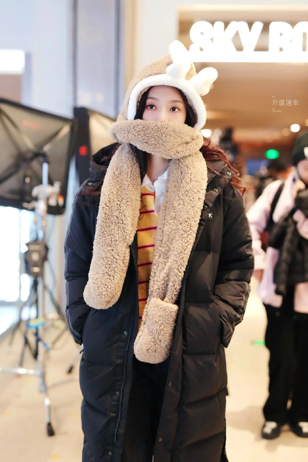 羽绒服+另类围巾