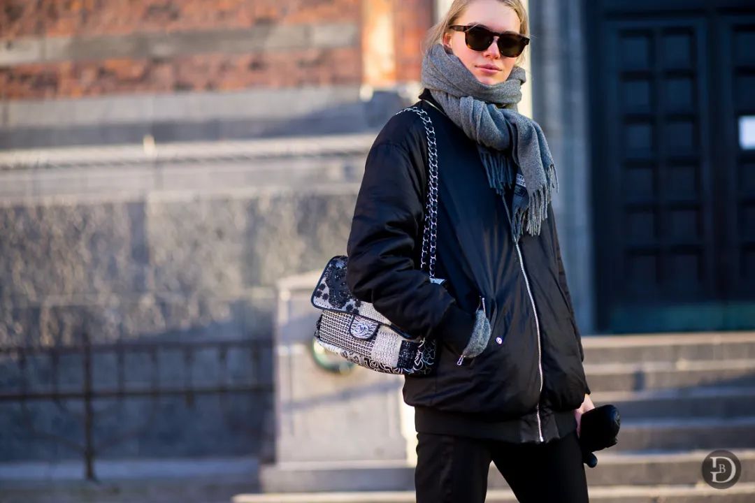 还记得之前说的毛衣“不好好穿”法嘛~一种“让平淡立刻变时髦”的方法,把毛衣随意地披在肩膀上,也就是把毛衣当作围巾使,简直潮爆了!!!