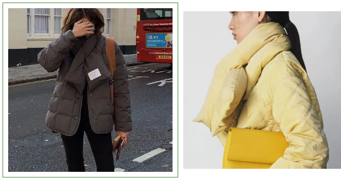 羽绒款围巾相对比较新颖,不仅保暖造型看起来也很有趣,加上是羽绒的材质,戴上脖子也会感觉很轻很舒适呢~