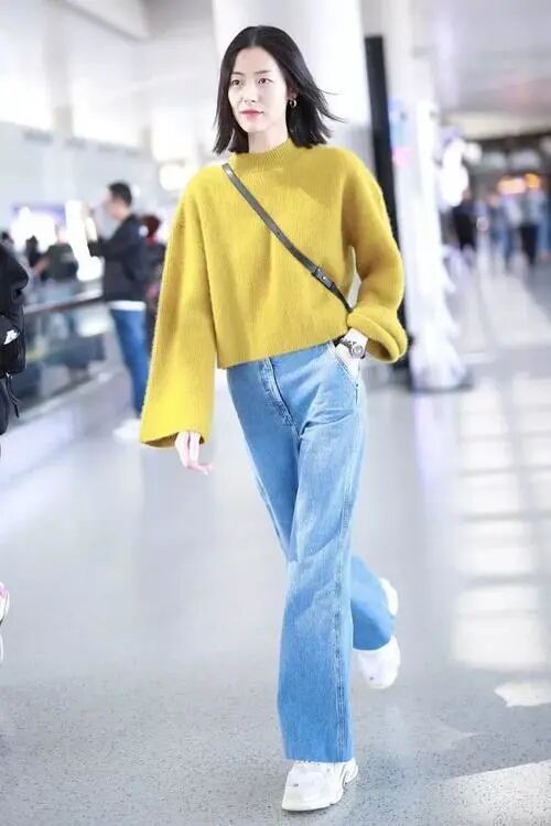 毛衣+牛仔阔腿裤这一搭配,经典百搭,想要什么样的风格,搭配一双决定风格的鞋子就可以了。想要通勤风的姐妹,可以选择搭配尖头高跟鞋/靴靴;想要休闲风的姐妹,则可以选择搭配小白鞋或者帆布鞋等鞋子;要想更chic更in,那就不妨考虑一双老爹鞋或者老爹鞋。