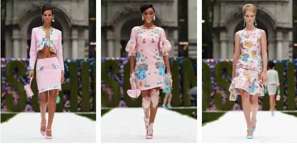破天荒选择在纽约举办时装周的Moschino,还是保持着童趣十足的设计,虽然2022春夏系列主打重塑创始人Franco Moschino的经典西装和单品,但蛛丝粉与卡通的结合却让人过目不忘。