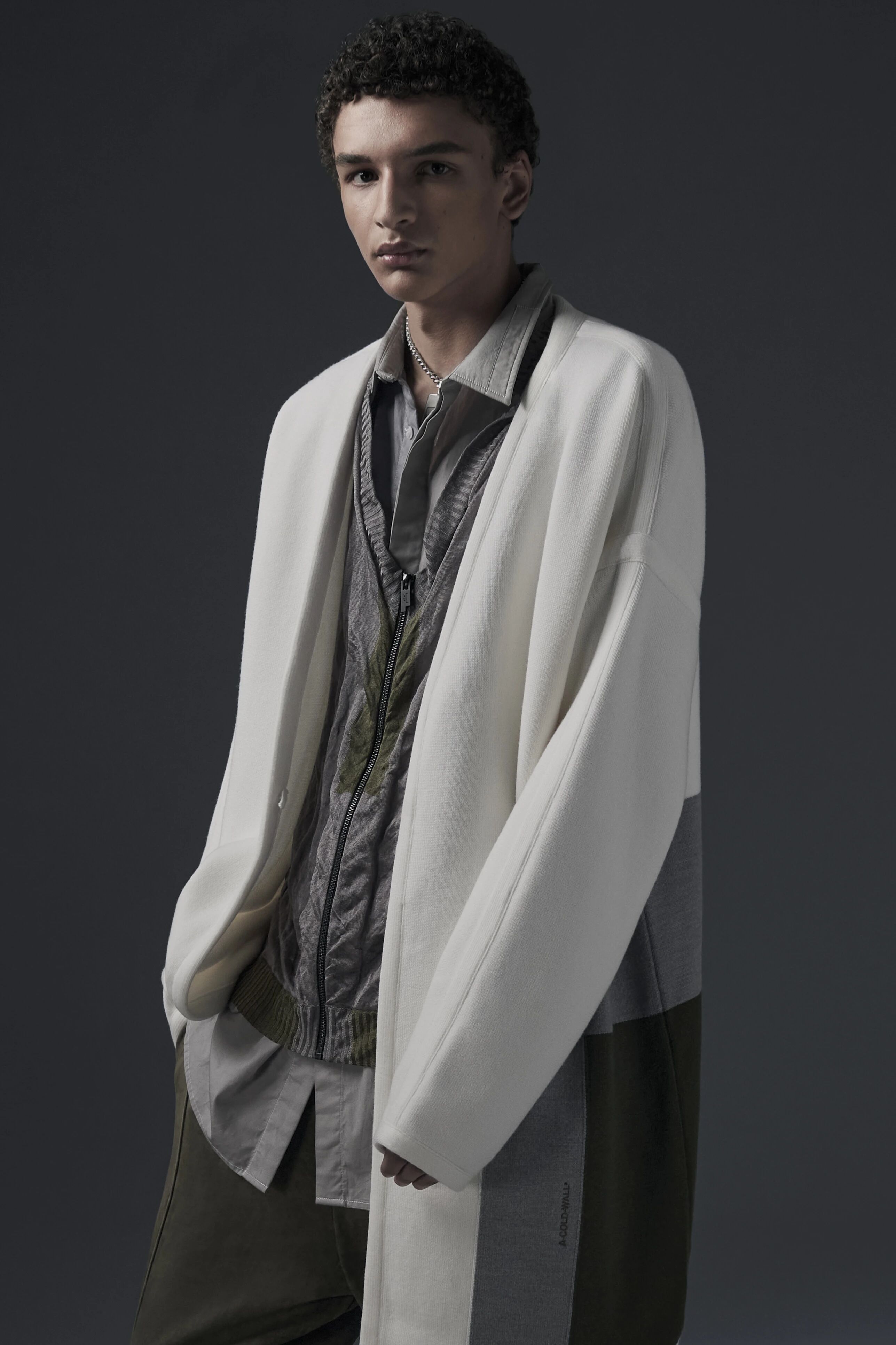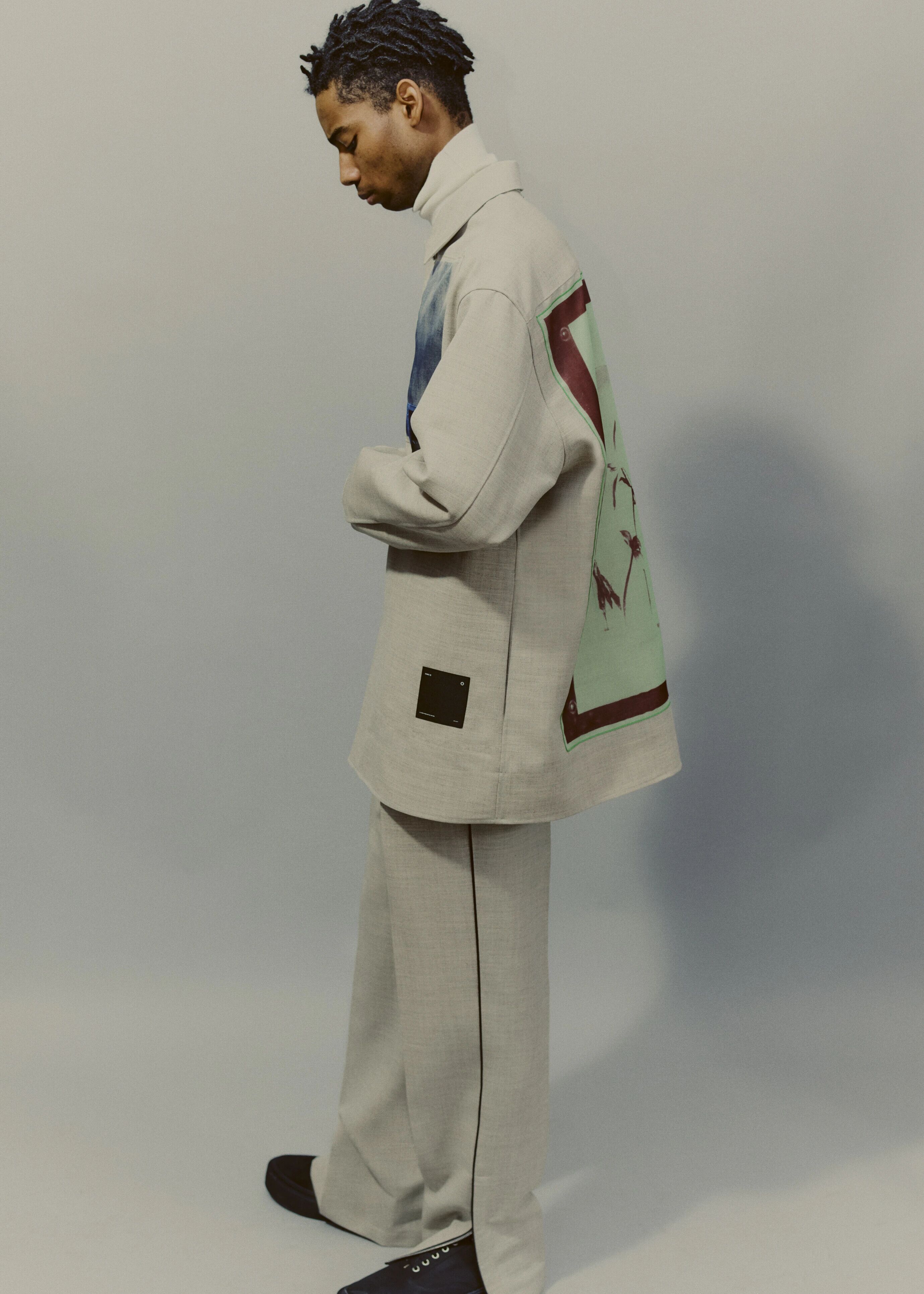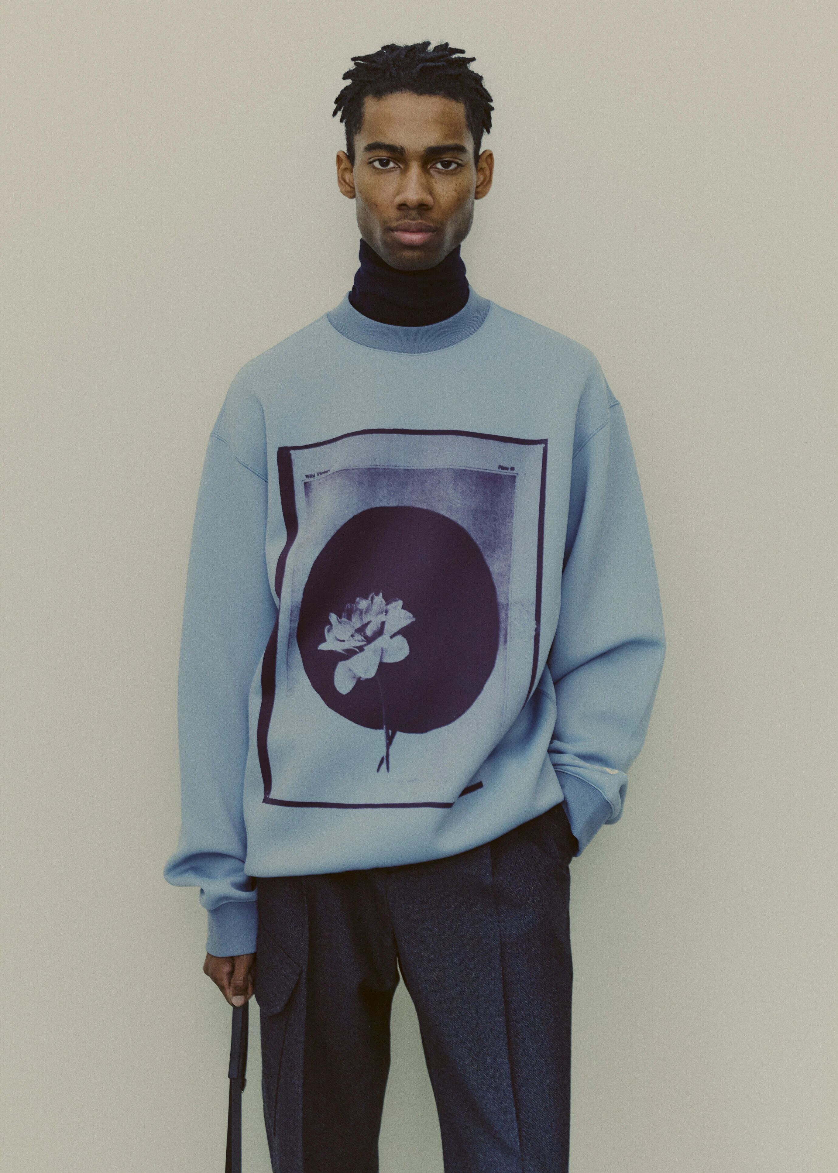 该风格在2021秋冬系列中得到了延续,该系列的灵感来自美国图形艺术家 Robert Rauschenberg 与其作品,把图案融入卫衣、围巾、衬衫等单品中。通过极简款式将色彩、材质以及机能细节达到设计上的平衡。
