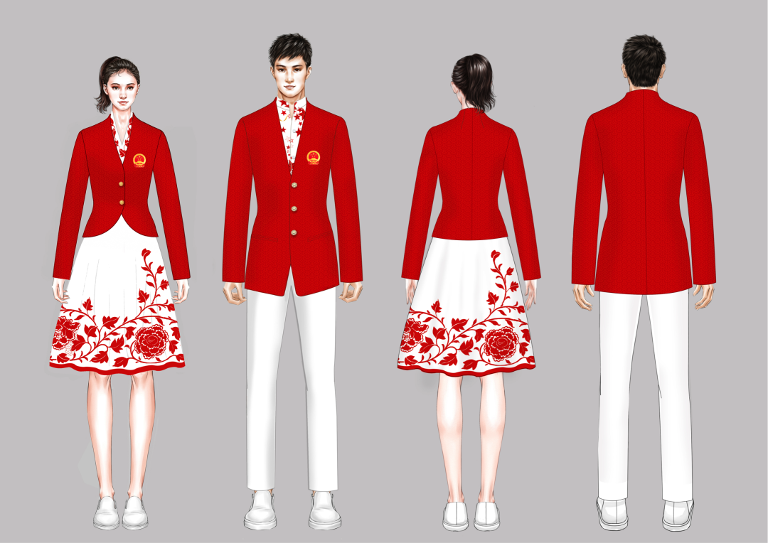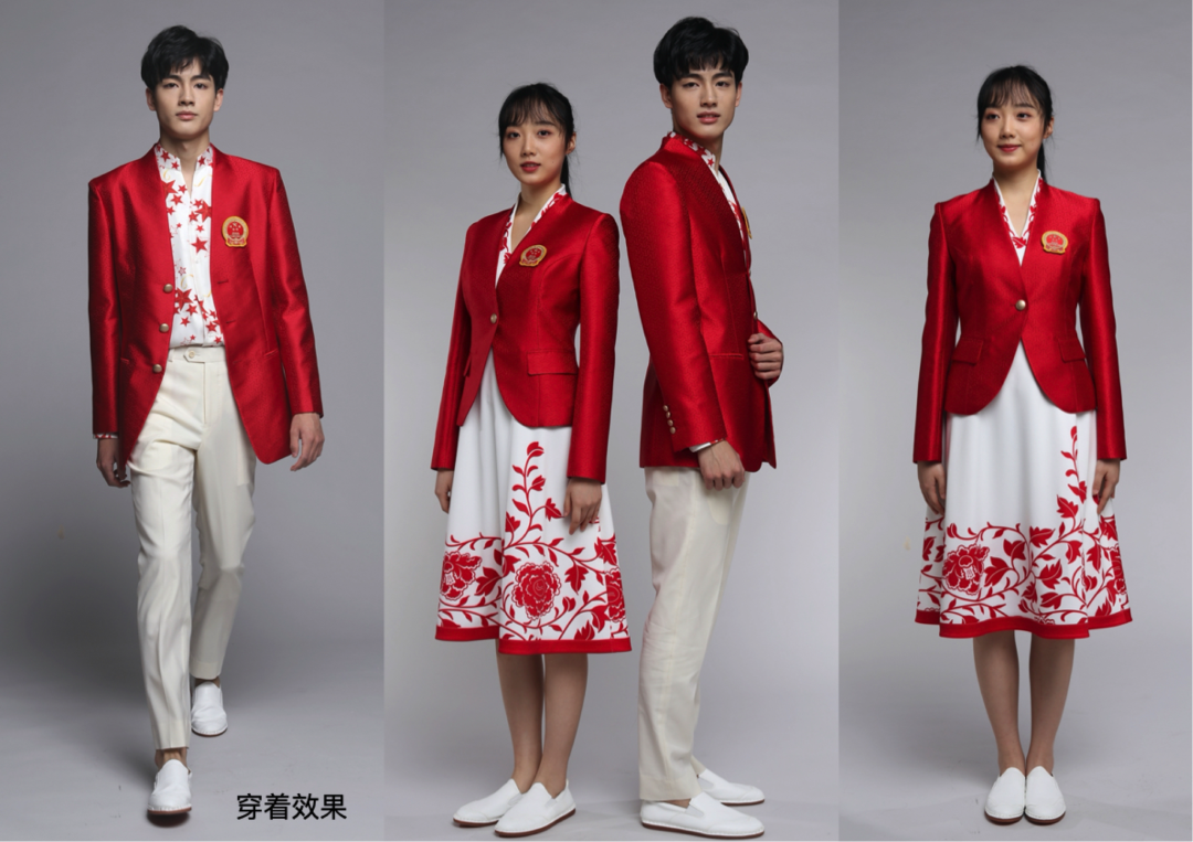 东京奥运会开幕式上“开门红”礼服的设计抒发出激情、喜悦、热烈、光明的气息,在整个主场馆环境中极为醒目。