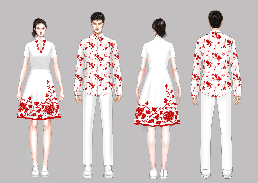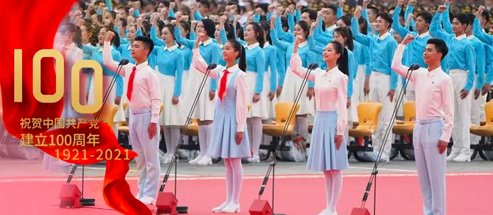 此次建党100周年大会庆祝活动,主献词人员、群颂人员、合唱指挥和合唱团成员服装,以及相关的服装配饰、鞋帽、雨衣等围绕“百年耀万川”的主题展开。
