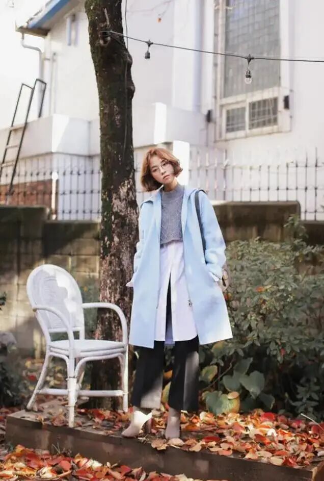 淡蓝的风衣,身形高挑,在人来人往中看上去很有风度。