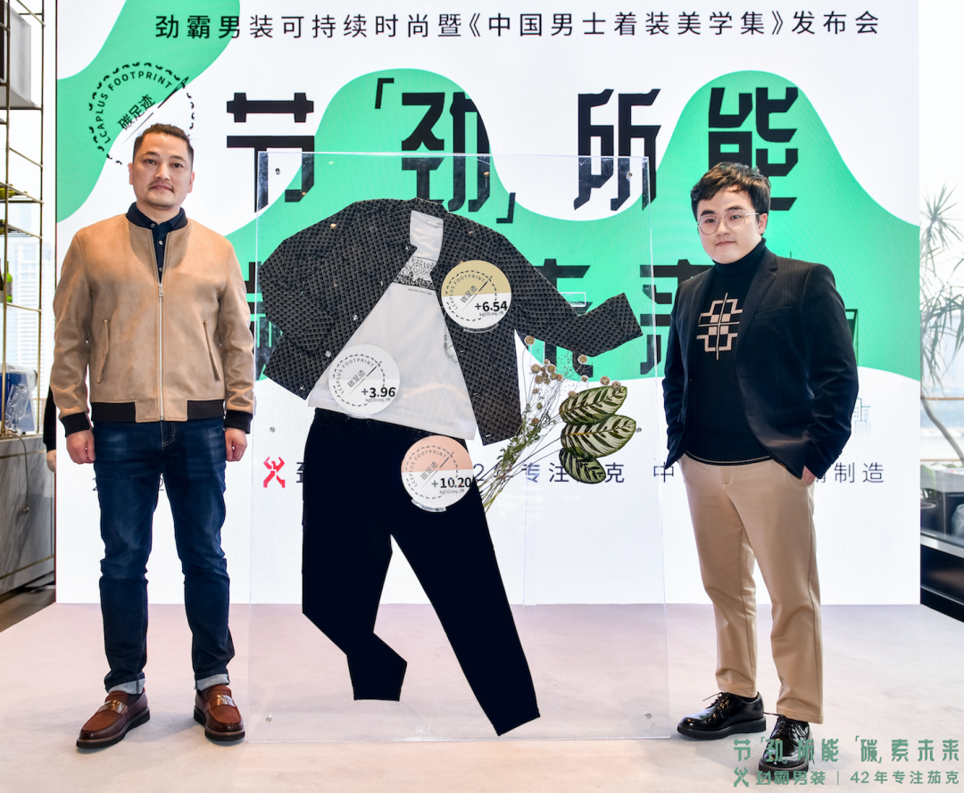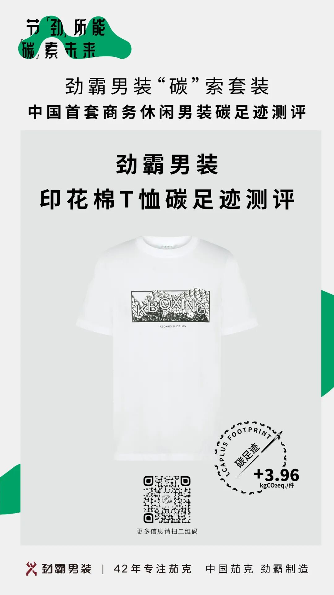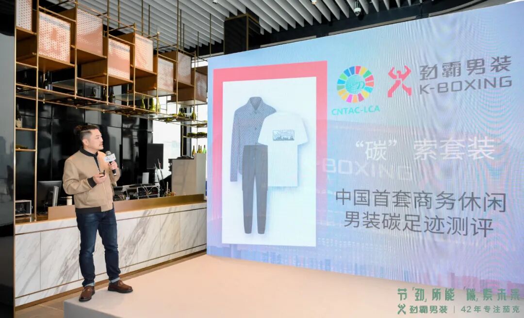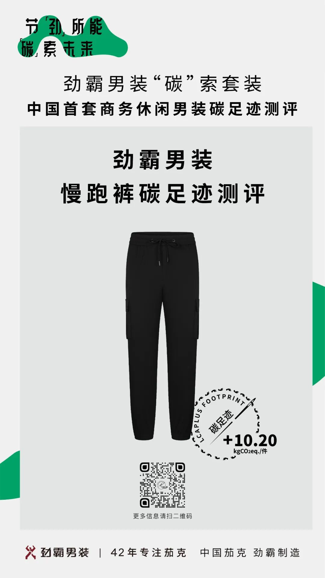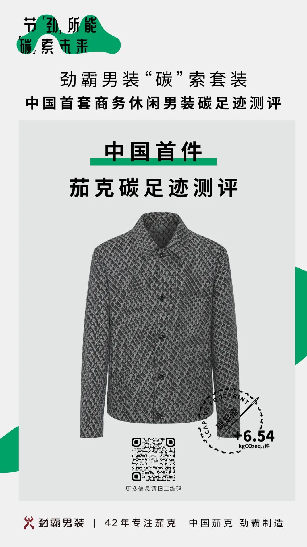 2021年12月28日,以茄克为核心的中国商务休闲男装标志性品牌劲霸男装于上海发布中国首套商务休闲男装碳足迹测评——劲霸男装“碳”索套装及劲霸男装产品碳标签。该套装由中国首件碳足迹茄克、碳足迹慢跑裤、碳足迹印花棉T恤构成。消费者通过扫描服装吊牌上带有二维码的碳标签,即可追踪并实时查阅该产品的碳足迹,从原料的开采、加工到产品的制造生命周期碳足迹一目了然。与此同时,现场还发布了由劲霸男装发起,东华大学、江南大学、北京服装学院、中国服装协会、中国流行色协会、《纺织服装周刊》联合编撰的《中国男士着装美学集》。此次活动,劲霸男装希望通过自己先行者的力量,带动绿色低碳循环产业体系发展,进一步构筑产业可持续时尚能力与未来话语权,引领消费者开启全新可持续时尚生活方式。节“劲”所能,“碳”索未来。气候变化对全球经济社会带来巨大影响,进行低碳绿色转型已成为全球共识。2020年9月,习近平总书记在第75届联合国大会一般性辩论上宣布中国二氧化碳排放力争于2030年前达到峰值,努力争取2060年前实现碳中和。作为推进碳达峰碳中和的重要领域,中国纺织服装行业一直是全球可持续治理的活跃力量,正如中国纺织工业联合会会长孙瑞哲所言,作为生活方式与文化潮流的载体,纺织服装行业触及每个个体,行业始终与人类文明演进深度相连。历史与现实的逻辑,使得纺织服装行业的绿色发展具有全球性、先导性、标志性意义。2005年开始,纺织服装行业是第一个在全球供应链和产业层面推动社会责任能力建设和可持续发展创新实践的行业。多年来,围绕着技术创新、产品创新、管理创新、模式创新,行业绿色发展卓有成效。纺织服装行业已成为中国最早推进产业级零碳目标的行业。当前,在双碳目标的指引下,行业正在打开以低碳减碳为核心的绿色发展新局面。