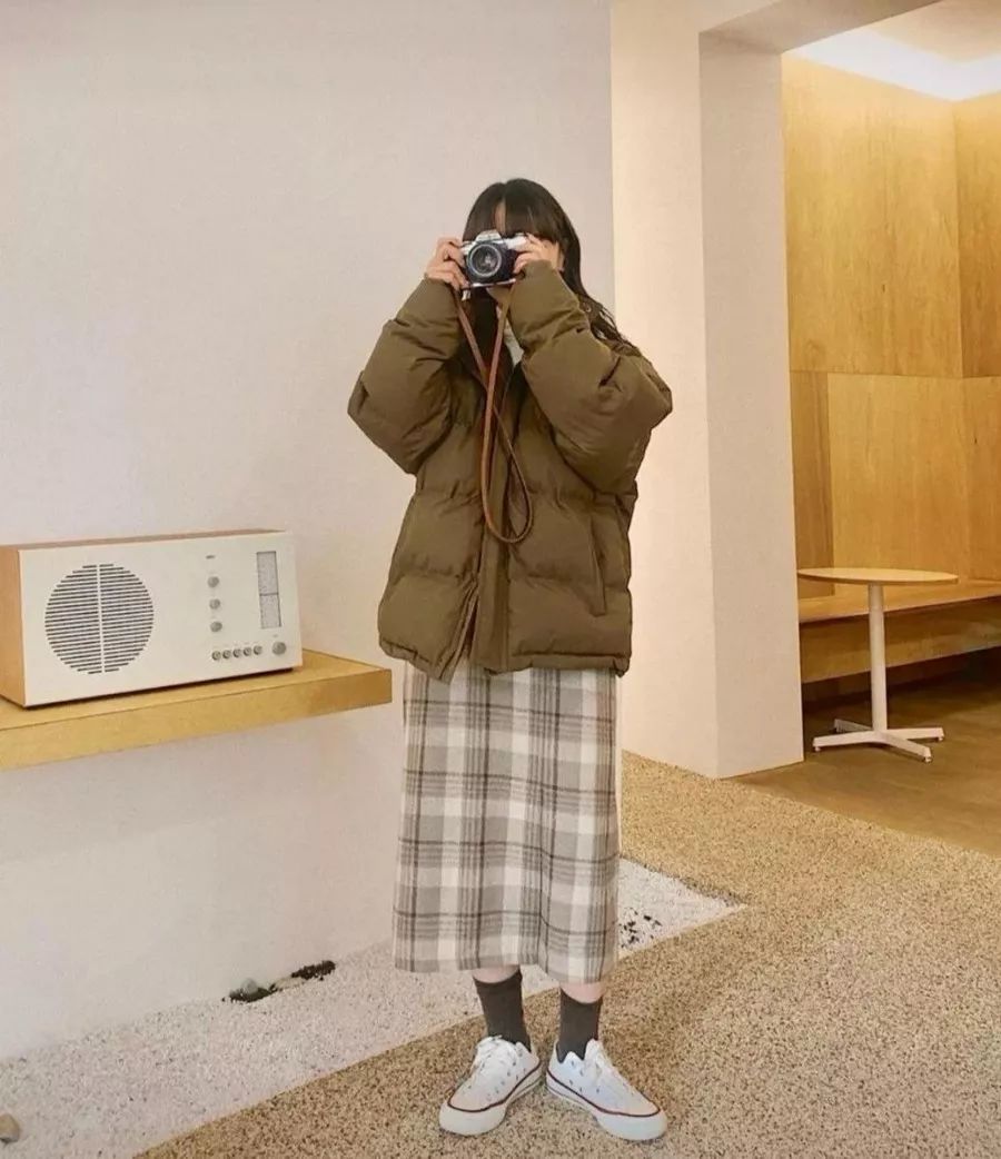 太冷的地区可以选择用厚实的针织裙作内搭然后加上打底裤围巾,全方位保暖,北方地区get