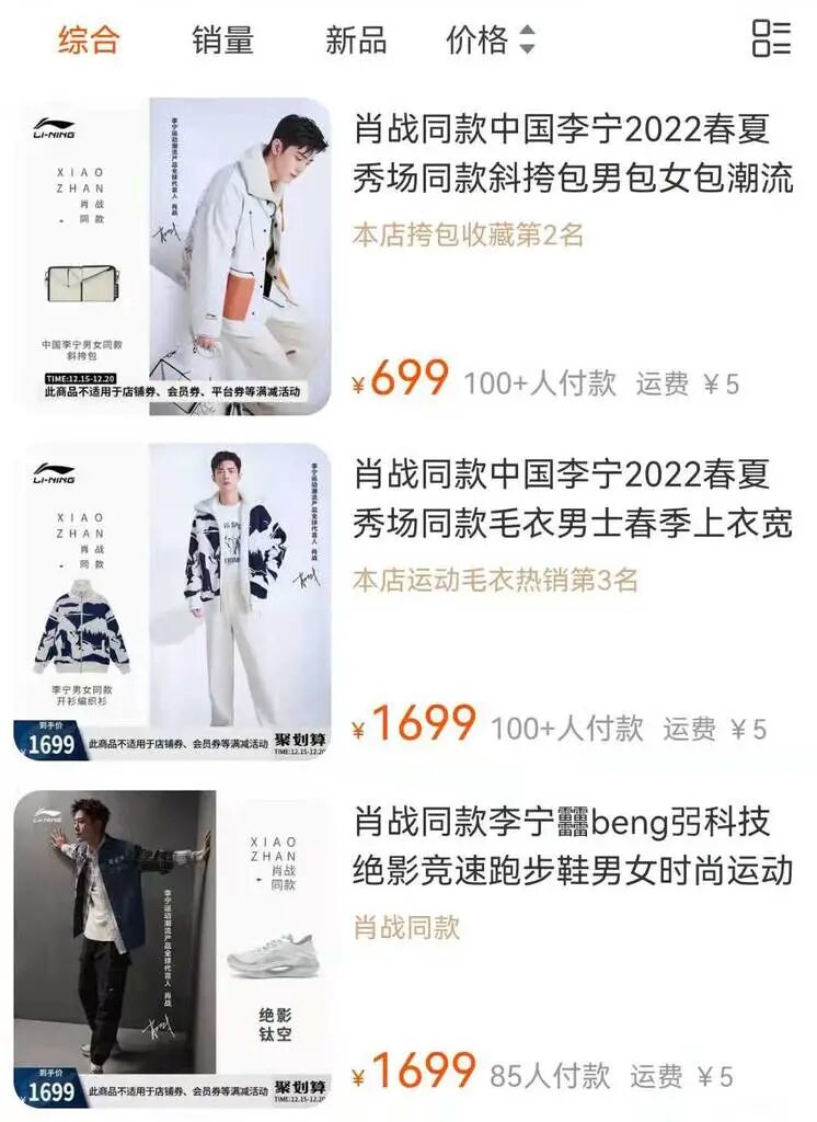 这相当于变相给自己圈了一波消费者。如果你去看李宁天猫官网1699元的绝影跑鞋,上面清晰地写着“肖战同款”。你不买,总有人会买。