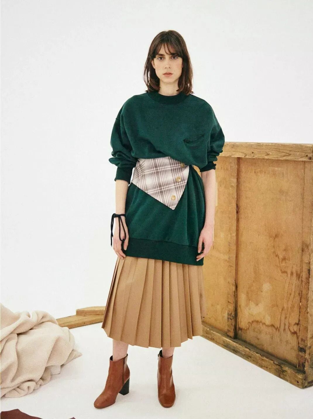不一样的面料材质间的碰撞也能带来不一样的穿衣灵感,so就算是同色系也会穿出不同的高级style~