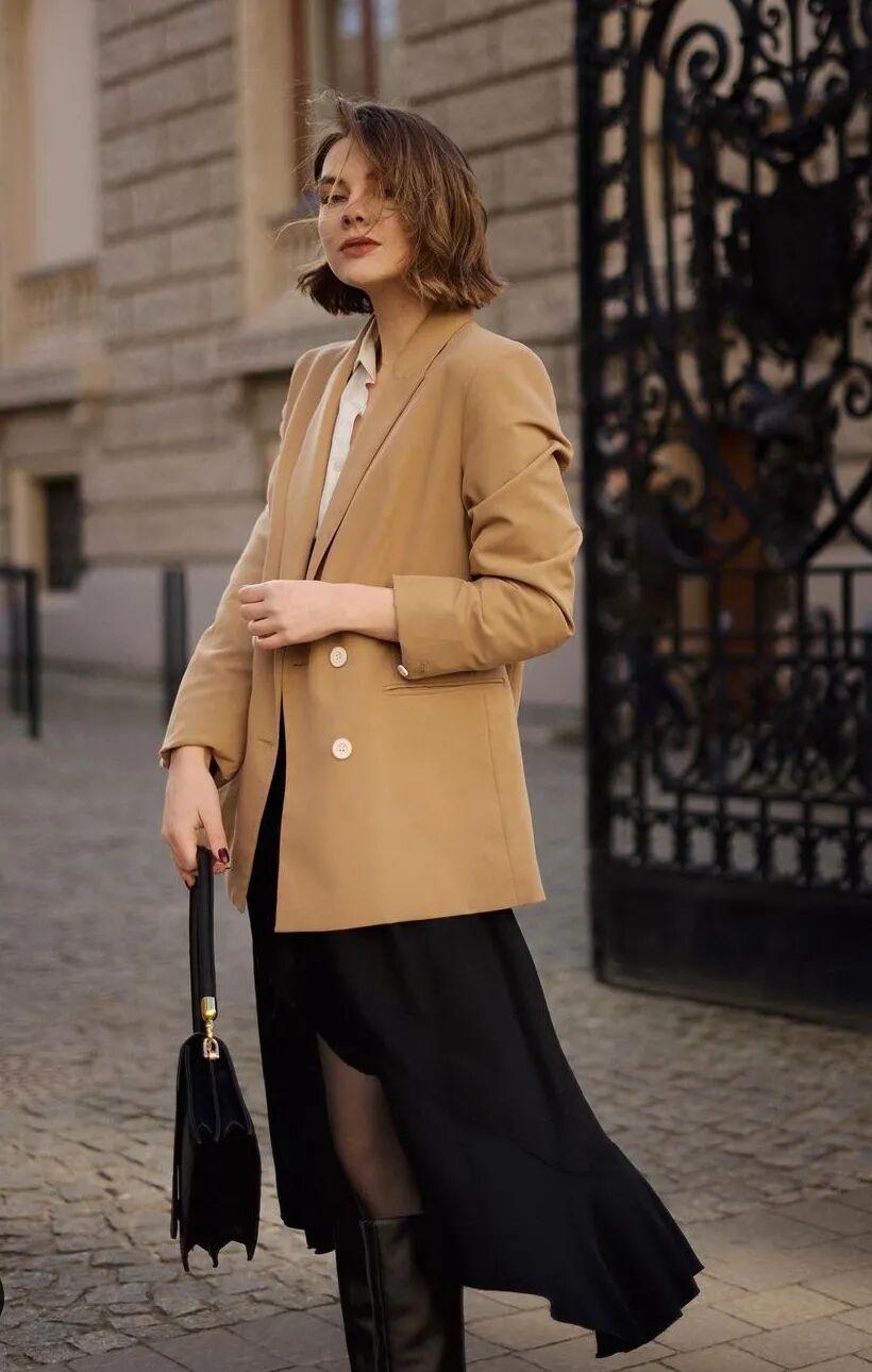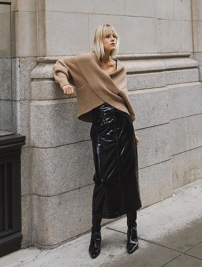 若是要将高级的大地色再穿出一些些酷酷的潮流感的话,那就要祭出另一百搭利器---黑色了。黑色的隆重与神秘,足以凸显大地色的高级感,气质女人的首选配色非它莫属。