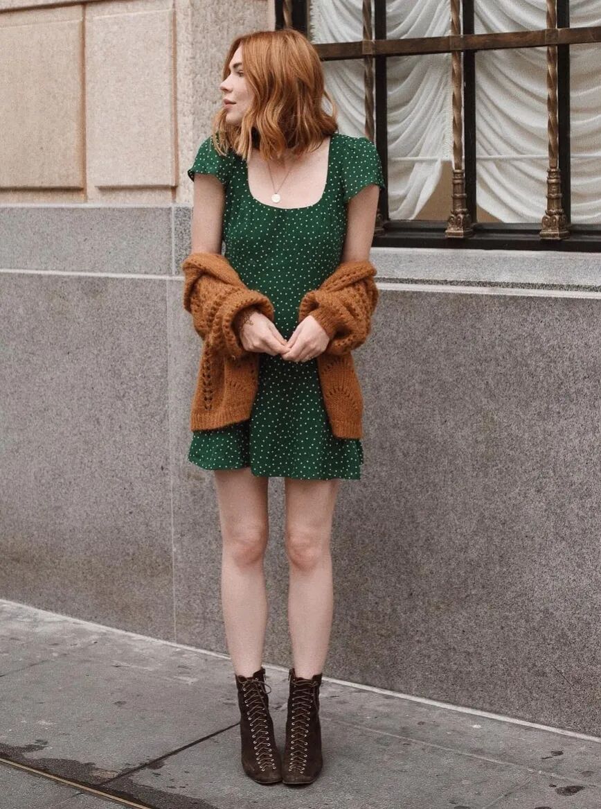 低饱和度的绿色最不挑人,与大地色组合有种复古小清新的感觉。