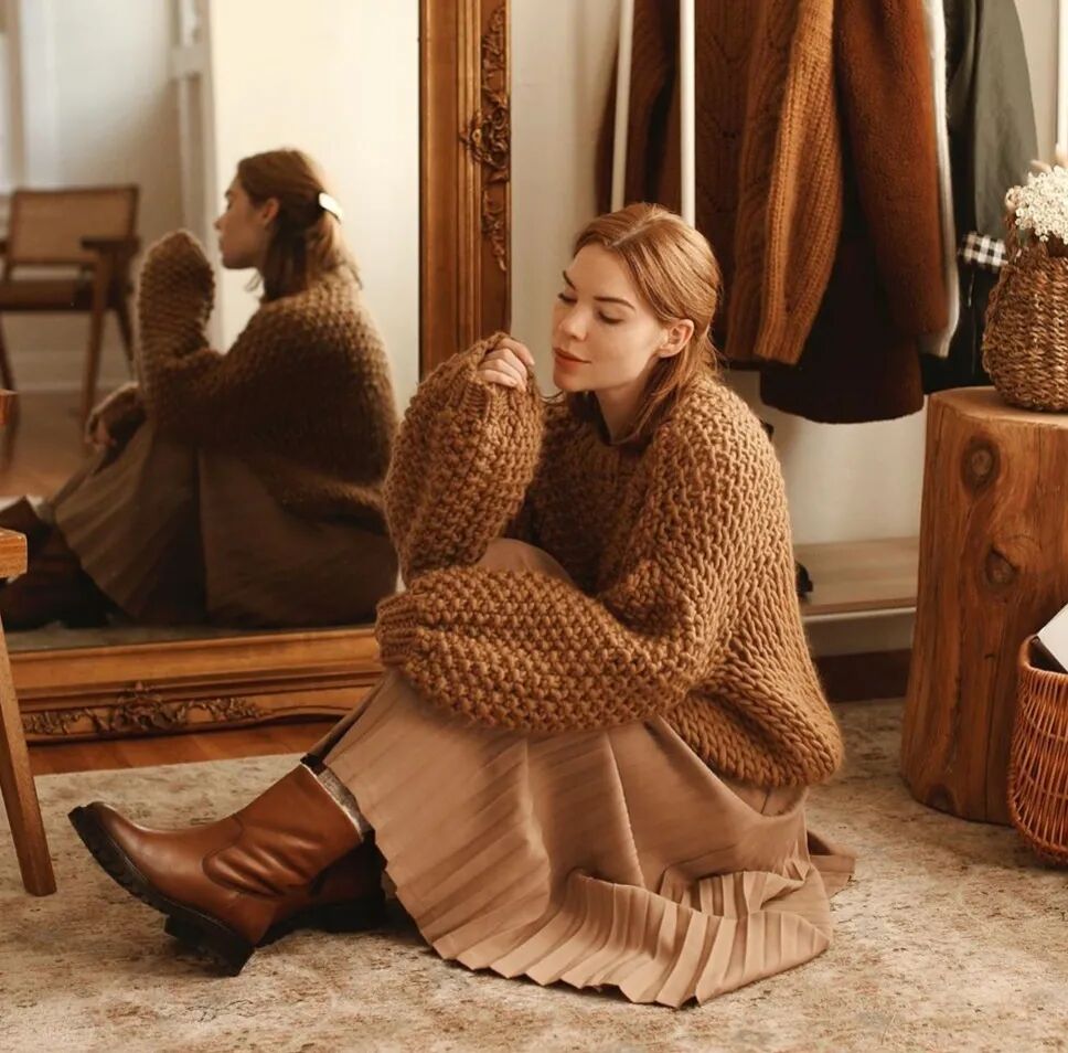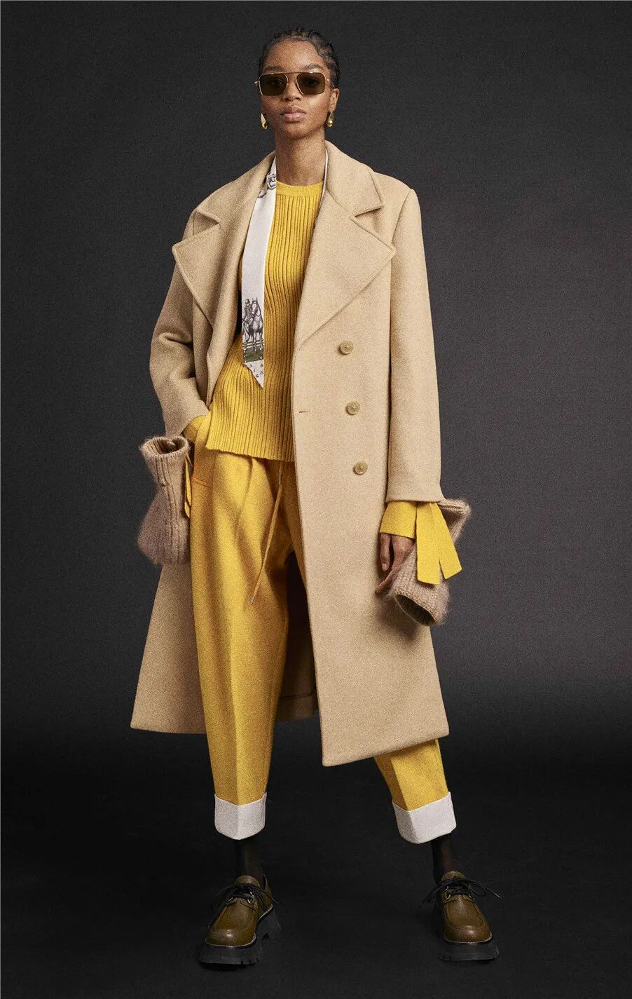 大地色与黄色搭配,最能穿出高级淡雅的感觉。尤其是淡黄或明黄,搭配深浅不同的大地色,满满秋日暖阳的明媚氛围感。
