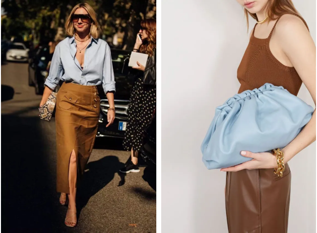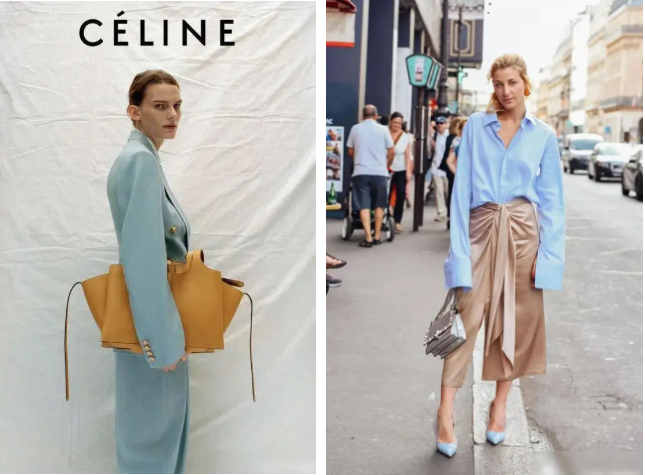 而婴儿蓝+高级驼一直都是我很喜欢的组合,清冷的蓝色和成熟的高级驼,冷暖色系的配色就很让人眼前一亮。