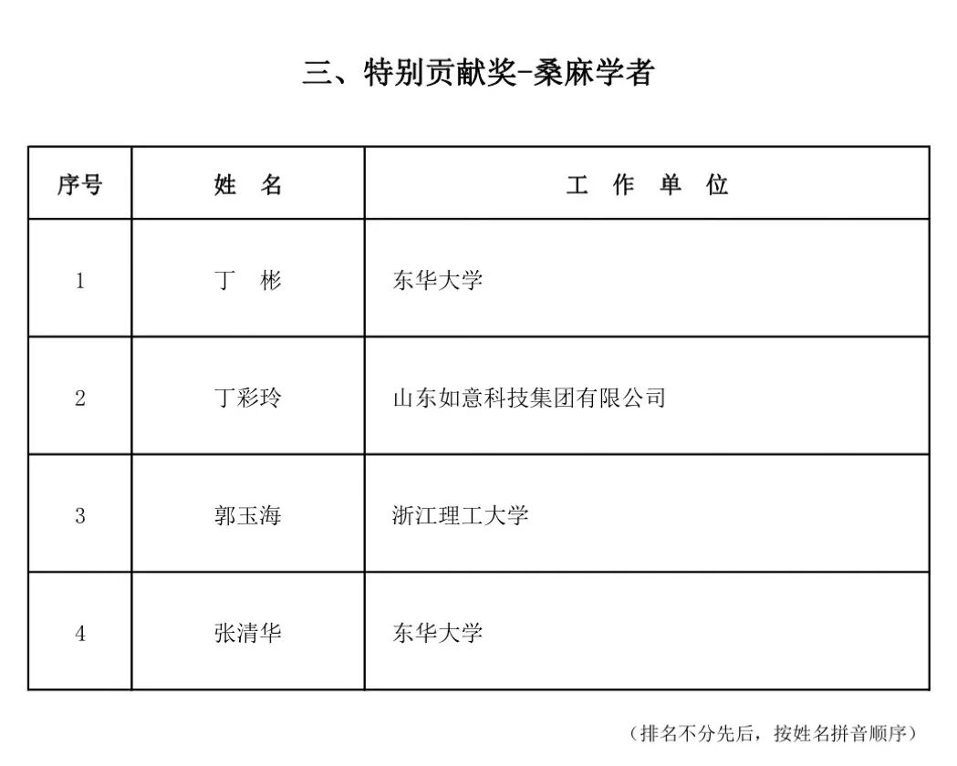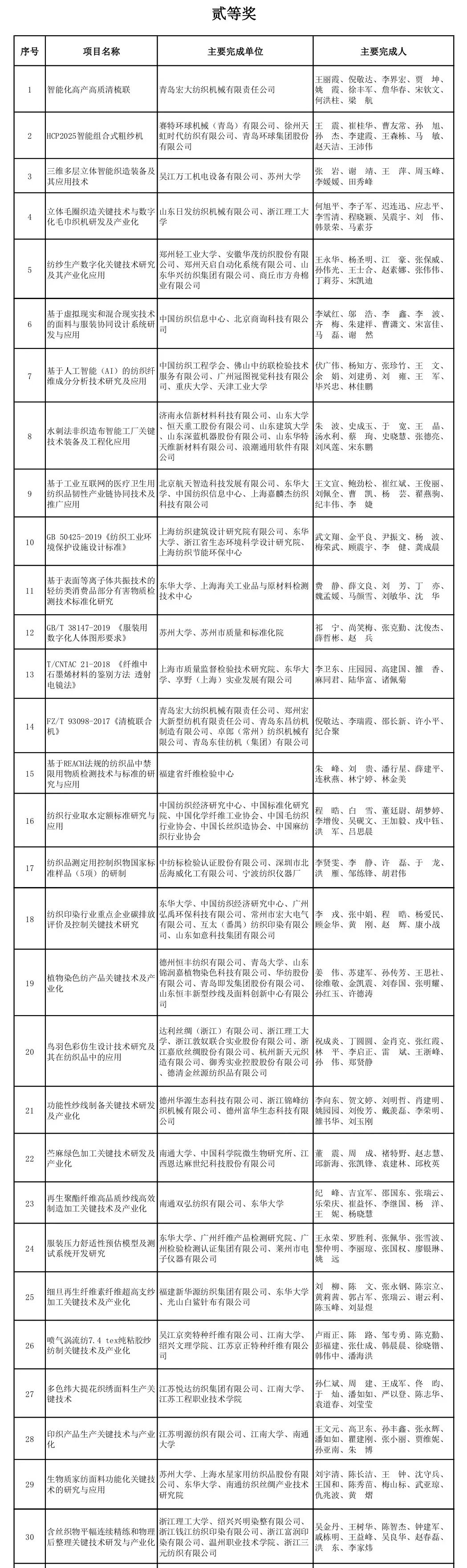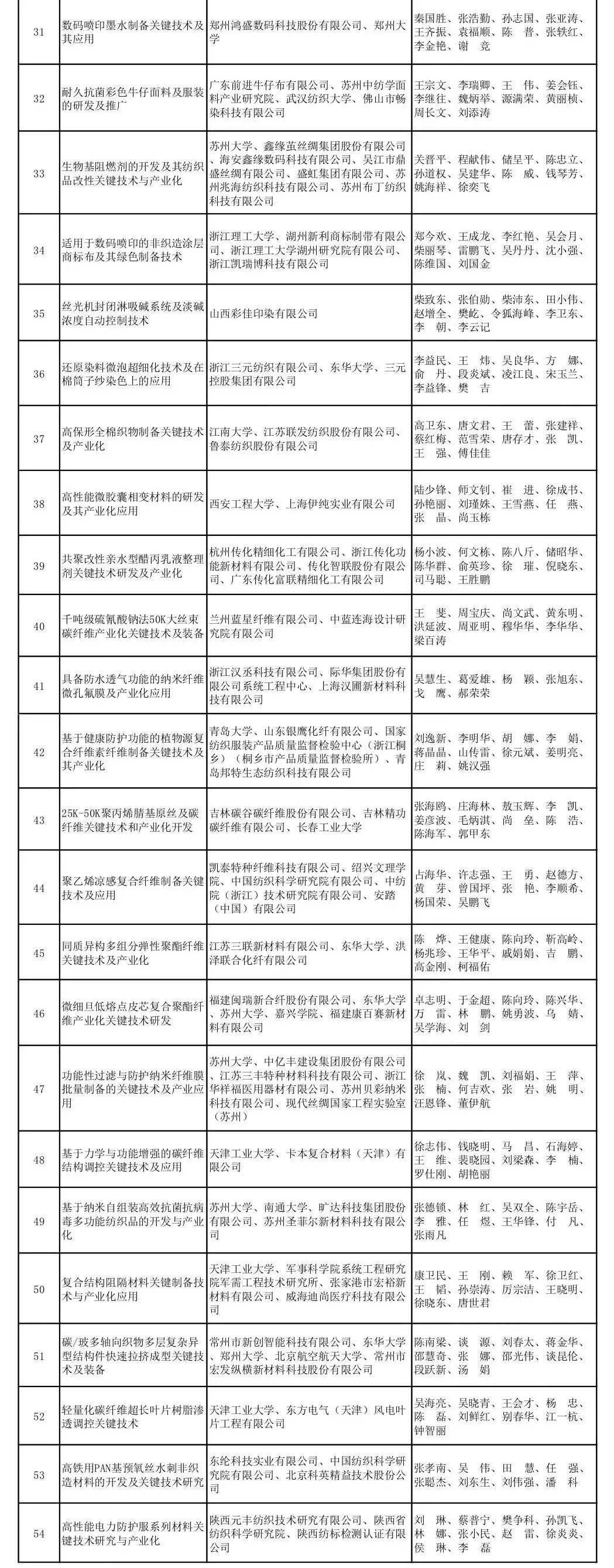 日前,中国纺织工业联合会发布《关于 2021 年度中国纺织工业联合会科学技术奖励的决定》。根据《中国纺织工业联合会科学技术奖励办法》的规定,经中国纺织工业联合会科学技术奖励评审(选)委员会评审(选)、中国纺织工业联合会科学技术奖励委员会审定,决定授予“多级结构纤维集合体柔性压力传感材料与器件制造关键技术”等 2 项成果中国纺联技术发明奖一等奖,授予“高活性 PTA 氧化催化剂绿色制备关键技术及产业化应用”等 3 项成果中国纺联技术发明奖二等奖;授予“数字化全成形经编装备及智能生产管理系统” 等 13 项成果中国纺联科技进步奖一等奖,授予“智能化高产高质清梳联”等 54 项成果中国纺联科技进步奖二等奖;授予丁彬等 4 位科技工作者中国纺联特别贡献奖-桑麻学者。