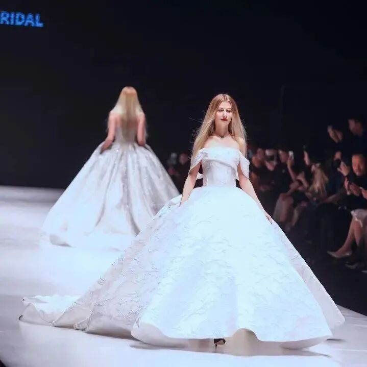 此次春夏系列共由两个部分组成——华丽鲜艳的礼服与洁白梦幻的婚纱。在超模游天翼的倾情演绎及惊艳压轴下,当代新娘娇媚羞涩、甜美灵动、性感大气的多变形象在布置简约的T台上呼之欲出。模特的翩翩步伐中,定制礼服的考究细节也活灵活现,诉说着关于21世纪爱与憧憬的童话故事。丝绸闪缎的熠熠光泽,蕾丝绣花的蜿蜒勾勒,钉珠褶皱的层层叠加,以各自的艺术语言配合多种廓形,塑造出独一无二的工艺品,成就女性生命中的光辉时刻。