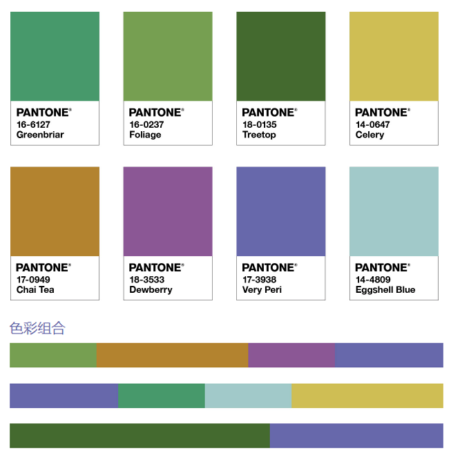 自然泉源是大自然色调全面与和谐的组合,强调绿色调与良善的 PANTONE 17-3938 长春花蓝的兼容并蓄,以及这些舒适雅致与滋养的色彩所流露的健康特质。