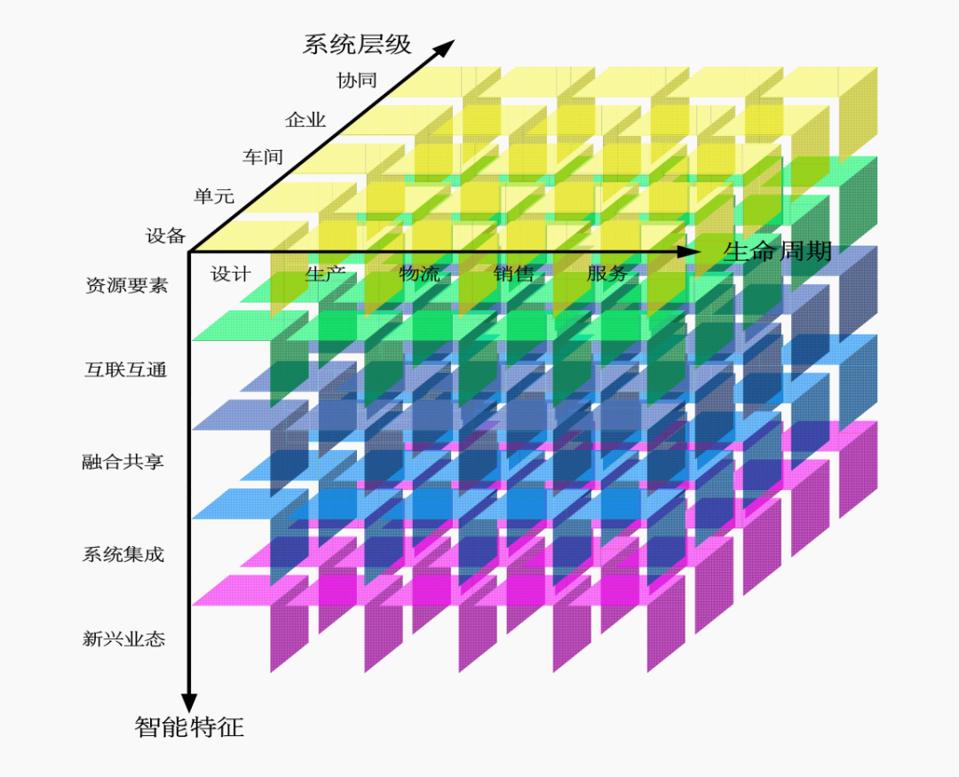 智能特征是指制造活动具有的自感知、自决策、自执行、自学习、自适应之类功能的表征,包括资源要素、互联互通、融合共享、系统集成和新兴业态等5层智能化要求。