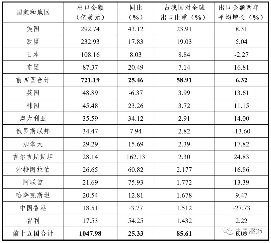 事实上,这并非首次发达国家取消对我国的普惠制关税优惠待遇。据海关总署此前公布的信息,在2019年4月,日本取消了对我国的普惠制关税优惠;在2021年10月,俄罗斯、哈萨克斯坦、白俄罗斯等欧亚经济联盟也取消对我国的普惠制关税优惠。目前仍给予我国出口商品普惠制待遇的国家分别为挪威、新西兰和澳大利亚。据悉,普惠制是发达国家对发展中国家或地区出口的制成品和半制成品给予的一种普遍的、非歧视性的、非互惠的关税优惠制度,是在最惠国关税基础上进一步减免的一种特殊关税。这项政策有利于帮助发展中国家提升出口产品的竞争力,扩大出口,促进发展中国家工业化和经济发展。根据《环球时报》的报道,自1978年普惠制实施以来,全球先后有40个国家给予中国普惠制关税优惠,其中大多是中国的重要贸易伙伴,如欧盟成员国及英国、俄罗斯、加拿大、日本等。我国也积极利用普惠制扩大向发达国家的出口,在外贸增长和产业发展等方面发挥了重要作用。不过,普惠制并不是WTO的条款约定,不具法律约束性,对成员国而言更带有“号召”的意味。大多数欧盟国家一开始都对经济不发达国家实行了普惠制,因此在20世纪70年代普惠制很快在全球普及,但到80年代已渐趋停止,90年代开始逐渐退出。据介绍,实施普惠制的欧盟国家为保护本国工、农业生产,避免普惠制优惠进口过多而对其经济发展带来不良影响,在各自的普惠制方案中都制定了相应的保护措施。随着发展中国家的经济不断增长后,对于触发实施保护措施的产品和受惠国,这些欧盟国家将不再给予其普惠制待遇。《环球时报》分析指出,随着发达国家给予发展中国家的普惠制优惠正逐步退出,全球享受普制的国家越来越少。中国作为全球第二大经济体,第一大货物贸易国,欧美国家不再给予中国普惠制,说明中国经济增长,产品国际竞争力越来越强,已逐渐从这些国家普惠制名单中“毕业”。2021年1-9月我国对部分国家和地区出口服装情况而纺织服装是我国的重点出口商品,在疫情持续的两年时间里,产业凭借口罩、防护服等防疫物资出口实现逆势增长,并成为拉动我国出口贸易增长的重要动力。再看今年前三季度的服装出口数据,1-9月,我国对美国、欧盟日本、东盟、英国、澳大利亚等十五个国家和地区出口服装总金额1047.98亿美元,同比增长25.33%,占我国对全球出口比重的85.61%,出口金额两年平均增长6.09%。其中,我国对欧盟出口服装额达232.93亿美元,同比增长17.83%,占我国对全球出口比重的19.03%,出口金额两年平均增长5.04%;我国对英国出口服装额达48.89亿美元,同比减少6.37%,占我国对全球出口比重的3.99%,出口金额两年平均增长13.61%;我国对加拿大出口服装额达29.29亿美元,同比增长15.69%,占我国对全球出口比重的2.39%,出口金额两年平均增长17.82%。同期,我国对日本出口服装额达108.16亿美元,同比增长8.03%,占我国对全球出口比重的8.84%,出口金额两年平均减少2.27%;我国对俄罗斯联邦出口服装额达34.47亿美元,同比增长7.94%,占我国对全球出口比重的2.82%,出口金额两年平均减少13.6%。显然,作为我国服装产业的主要出口市场,32国取消给予我国普惠制待遇将会使部分出口外贸企业减少原有的价格优势,带来成本经营压力。而这或将倒逼行业企业加速转型升级,通过智能化、数字化等技术革新进行降本增效、增加产品的附加值。在业内人士来看,从长远来看,走智能化、数字化升级路线将促使产业迈向高质量发展,而随着我国产品竞争力越来越强,单纯关税政策就将很难影响到中国产品国际贸易的全局,也不会影响我国企业在自身实力增强后对未来更大市场机会的拓展与布局。据了解,针对32国取消给予我国普惠制待遇,海关总署建议企业可以申请非优惠原产地证书,来适用最惠国税率。最惠国待遇是WTO基本原则之一,在我国入世后,自动获得WTO最惠国待遇,货物出口到WTO成员国时适用最惠国税率。同时,针对瑞士、列支敦士登、澳大利亚、新西兰等国家已与中国签署并实施自由贸易协定的,企业也可以申领相应的自贸协定原产地证书来适用协定税率。更值得关注的是,随着《区域全面经济伙伴关系协定》(RCEP)将于明年1月1日正式生效,我国将迎来深化对外开放的新市场契机。作为由东南亚国家联盟十国发起、我国、日本、韩国、澳大利亚、新西兰等与东盟有自由贸易协定的五国共同参加的高级自由贸易协定,RCEP将通过削减关税及非关税壁垒,实现区域经济一体化。这将是全球人口最多,经贸规模最大、最具发展潜力的“朋友圈”。在协定生效后,已核准成员之间90%以上的货物贸易将最终实现零关税。譬如我国对日本出口服装、家纺等主要纺织品可以在过渡期后全面实现零关税,这无疑将提升企业的成本优势,增强产品在日本市场的竞争力。精彩推荐:
