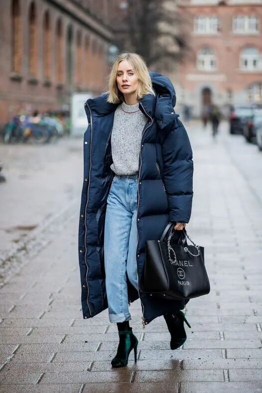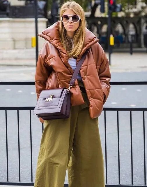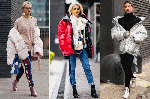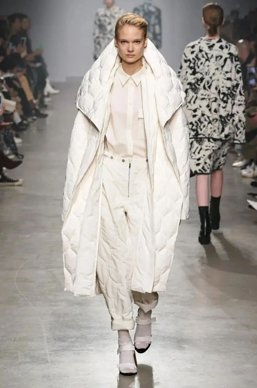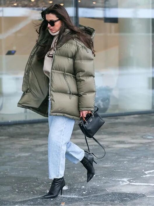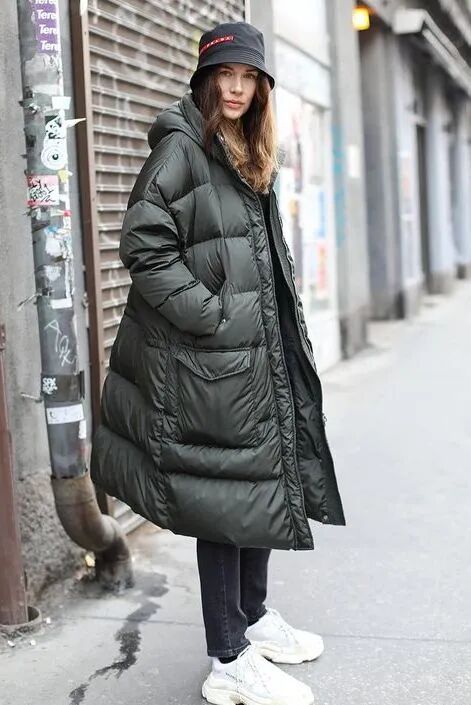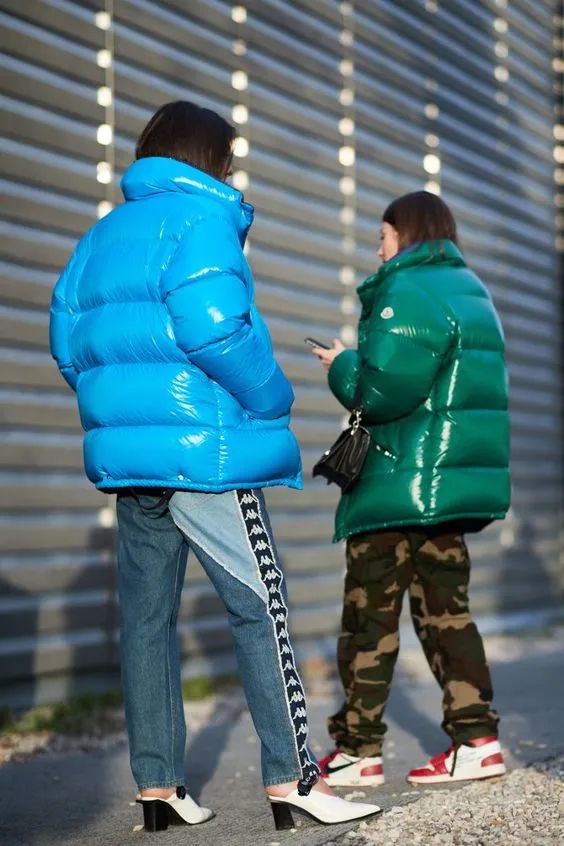 大廓型的羽绒服,不乏蓬松的质感,是街头最时髦的风景线,在冬天带来了十足的温暖。
