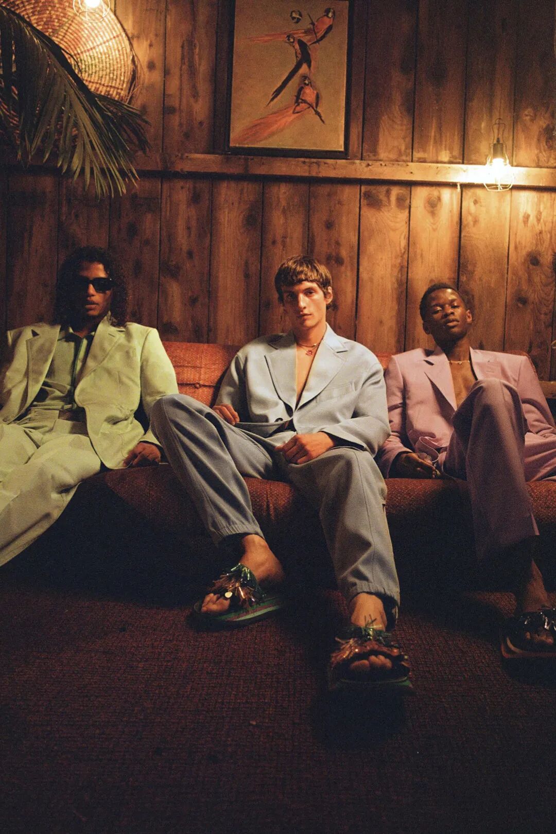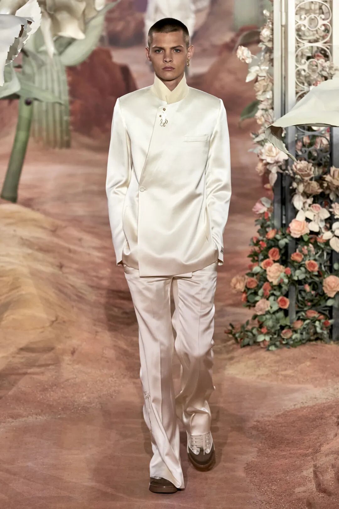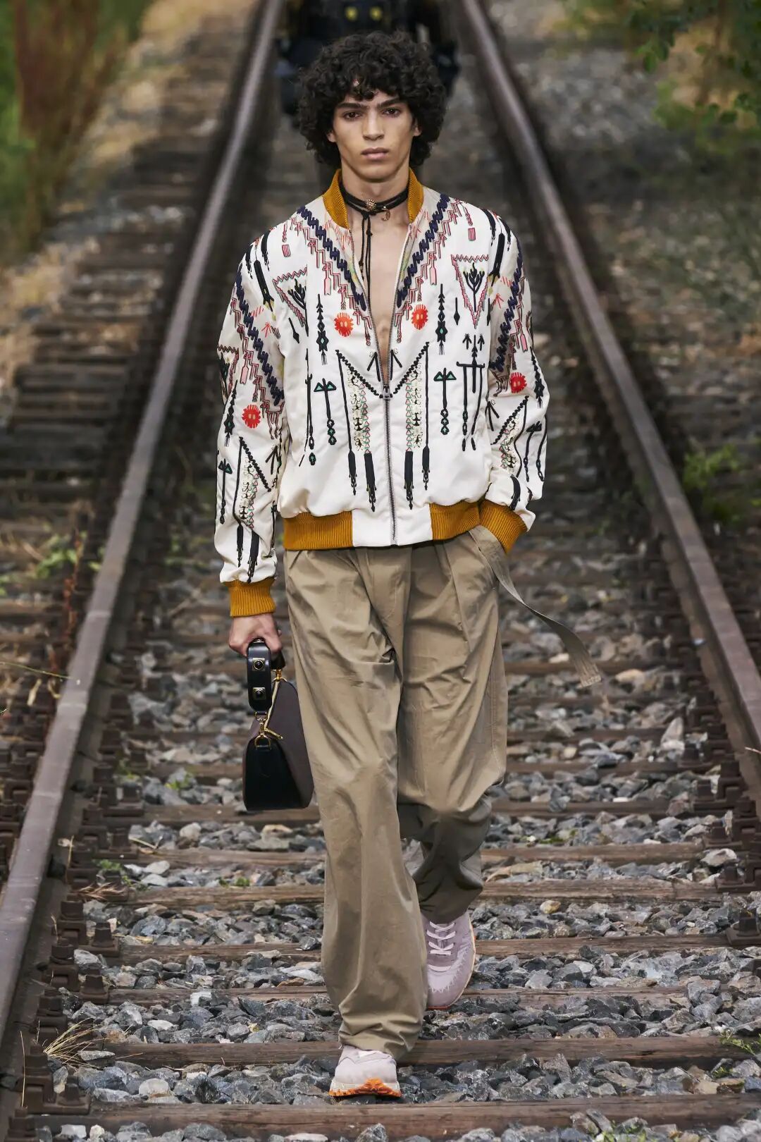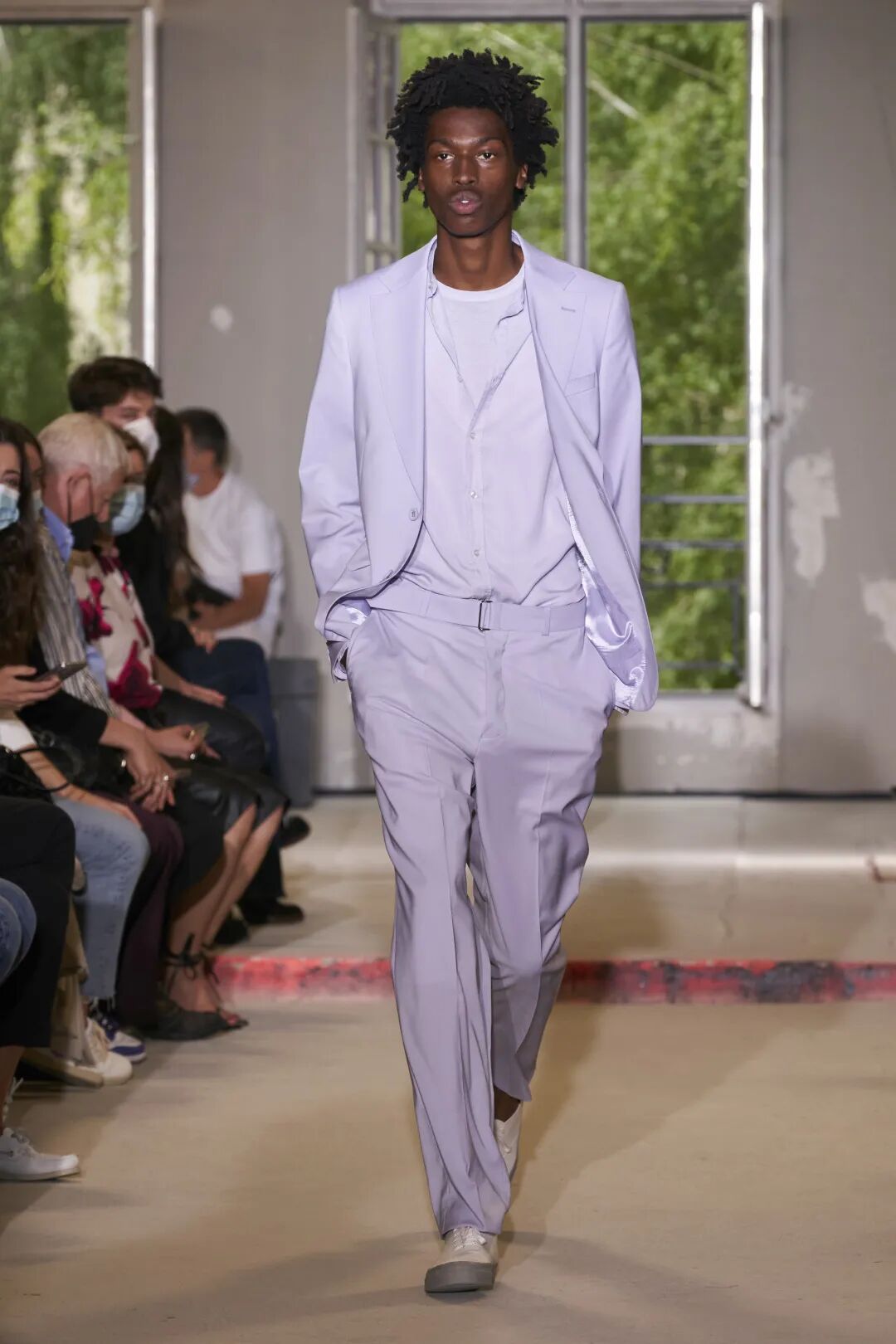 在2022春夏,男装服装设计呈现出谨慎而充满希望的基调,面料趋势以实用亚麻和加深纹理的经典面料为主,塑造出宽松的洋裁造型和高光泽缎面效果。
