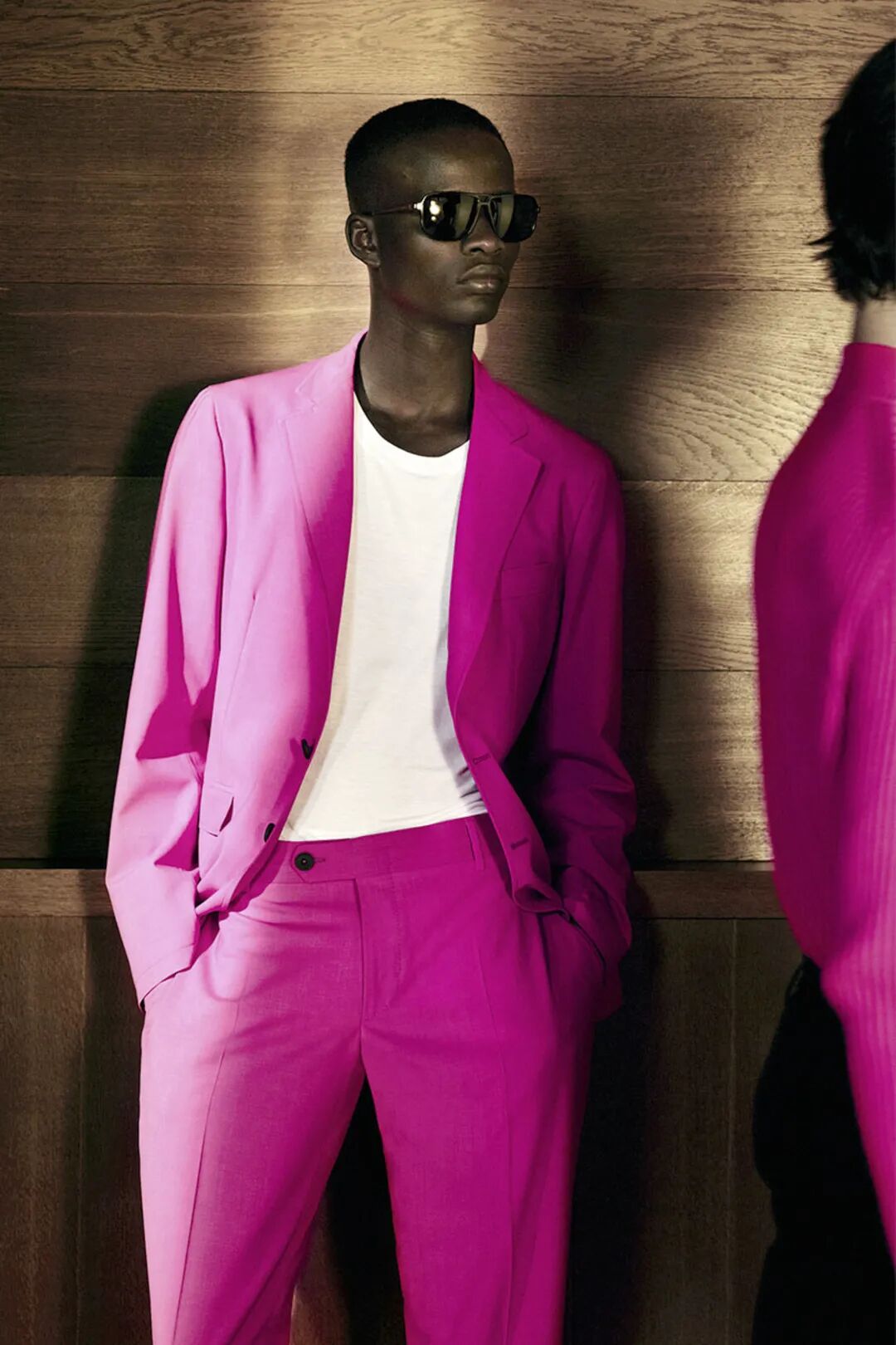 精致考究造型回归,全身饱和色调的休闲西装能够打造出前卫的个性效果,可大胆采用应季亮色数字薰衣草和超粉色。