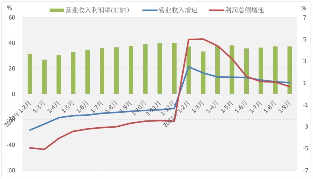 我国经济保持稳定恢复态势,但受全球多国疫情反弹、国内局部地区疫情汛情冲击以及上年同期基数抬升影响,主要运行指标增速有所放缓,经济转型调整压力有所显现。根据国家统计局和中国海关统计,前三季度,国内生产总值同比增长9.8%,比上半年放缓2.9个百分点;我国社会消费品零售额、出口总额和固定资产投资额(不含农户)同比增速较上半年分别放缓6.6、5.6和5.3个百分点。同期,居民收入和消费支出增速均有所放缓,8月消费者信心指数回落至2020年9月以来的最低水平。制造业采购经理指数(PMI)已经连续7个月下调,10月回落至49.2%,其中生产指数和新订单指数连续两个月位于收缩区间,反映制造业生产活动和市场需求总体放缓。