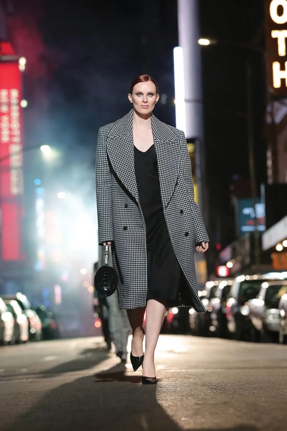 如果花卉印花让人联想到温暖的季节,那么格子就是秋冬季节的最爱。在新系列中,品牌提供中性色和亮色调款式的时尚外套。被称为“狗牙”或“鹅脚”的标志性在本季为许多品牌的系列增光添彩。Stella Mccartney 展示了一件带有棕色图案的阳刚大衣,Michael Kors Collection 展示了一款采用经典黑白图案变化的双排扣款式,而 Dolce & Gabbana 则选择了一件带有超大号子弹头图案的短款大衣。