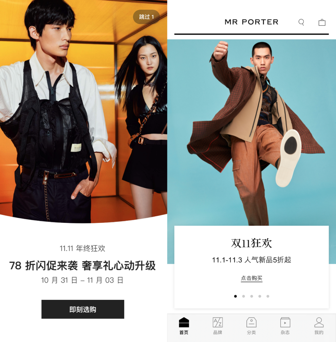 数据来源:亿欧数据尽管还未到最终见证又一高峰的“尾款”环节,但众多奢侈品牌与高端美妆品牌在双十一诸多环节的进一步渗透,更有分量的新入局者,以及一系列精致的营销策略,则为时尚零售带来了更深层的辐射作用。正如前文所提及,如今的双十一不再是独角兽称霸的单一局面。除了淘宝、京东等主流主流电商平台外,从短视频平台抖音,到奢侈品电商 Farfetch、Net a Porter、寺库,二手奢侈品平台红布林,以及潮流服饰电商得物、Yoho 有货也分别开启了今年的双十一争夺战。不仅通过首发限定款和定制款发售,虚拟技术和奢侈品养护等服务体验,以及分期免息的支付便利,跨境电商平台 Net a Porter、Farfetch 在今年双十一期间分别推出新品 5 折、限时 78 折等更直截了当的优惠策略。Net a Porter、Farfetch 推出双十一折扣优惠策略对于淘宝、京东等主流电商平台来说,越来越多的品牌数量、商品品类,以及更加丰富的售前售后服务也体现出,双十一正在成为奢侈品牌对中国市场看好、以及推进数字化转型的增长机遇。天猫在今年双十一期间汇集了 LVMH、开云集团、香奈儿、爱马仕以及历峰集团五大奢品巨头,覆盖箱包、服饰、珠宝、美妆、酒水等多个品类的限量款、定制款新品。其中开云集团旗下 Balenciaga、Qeelin、Alexander McQueen、Bottega Veneta 等奢侈品牌,历峰集团旗下 Cartier 和积家均参与其中。今年 2 月份入驻天猫的 Saint Laurent ,在双十一期间首发红色曼哈顿手袋,Qeelin 则特地发售天猫双十一独家款珍珠母贝项链,Alexander McQueen 首发夜光变色鞋等多款产品;Cartier 则选择首发圣诞款红色 Ballon Bleu 腕表,积家首次限时限量发售翻转系列天猫专享款腕表。京东则在今年双十一迎来了 Prada、Miumiu、Hugo Boss、Bally、Salvatore Ferragamo 等国际奢侈品牌加入。Delvaux 在此期间推出了 Mythical Highway 系列秋冬新款,Chopard 带来全新的 Precious Lace-Mini-Froufrou 系列珠宝,LVMH 集团旗下首次参加京东双十一男装品牌 Berluti 推出了新款 Scritto 图纹牛仔夹克。除此之外京东奢品还带来京尊达配送、皮具清洗养护、钟表维修保养、珠宝养护定制、改衣和定制,以及 3DVR 浏览和 AR 试鞋等服务,并与品牌打通全渠道模式,消费者可以在线上旗舰店同步购买线下门店货品。其中与 Prada 和 Miumiu 的全渠道合作范围已覆盖北京、上海、深圳、武汉、成都、沈阳 6 大城市 9 家门店,Zegna 也与京东奢品共同推出自营采购入库+线下指定门店+品牌大仓发货的全渠道模式。京东迎来 Prada、Hugo Boss、