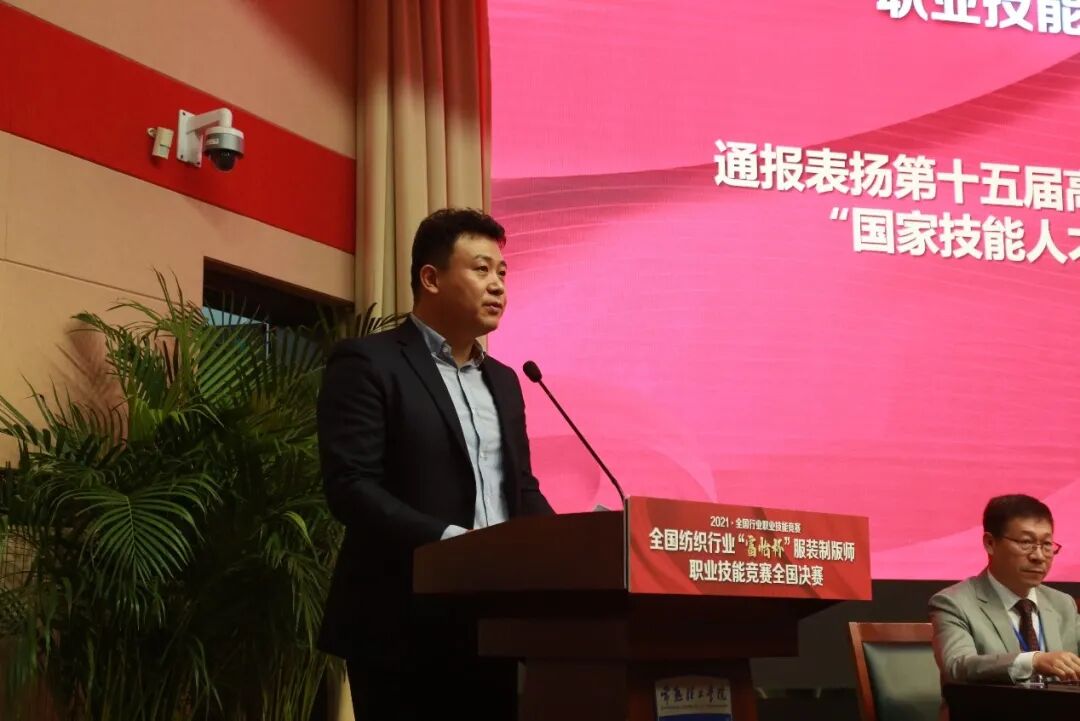 中国服装协会专职副会长兼秘书长焦培通报表扬了第十五届高技能人才评选表彰活动之“国家技能人才培育突出贡献个人”,成都纺织高等专科学校阳川老师获得了表彰。