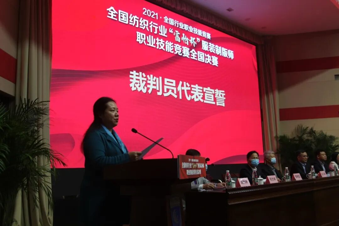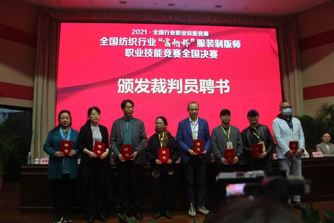 开幕式上,中国纺织工业联合会人力资源部人事处副处长江海华宣读了《关于2021年全国行业职业技能竞赛—全国纺织行业“富怡杯”服装制版师职业技能竞赛全国决赛聘请裁判员的通知》,随后向裁判员颁发了聘书。