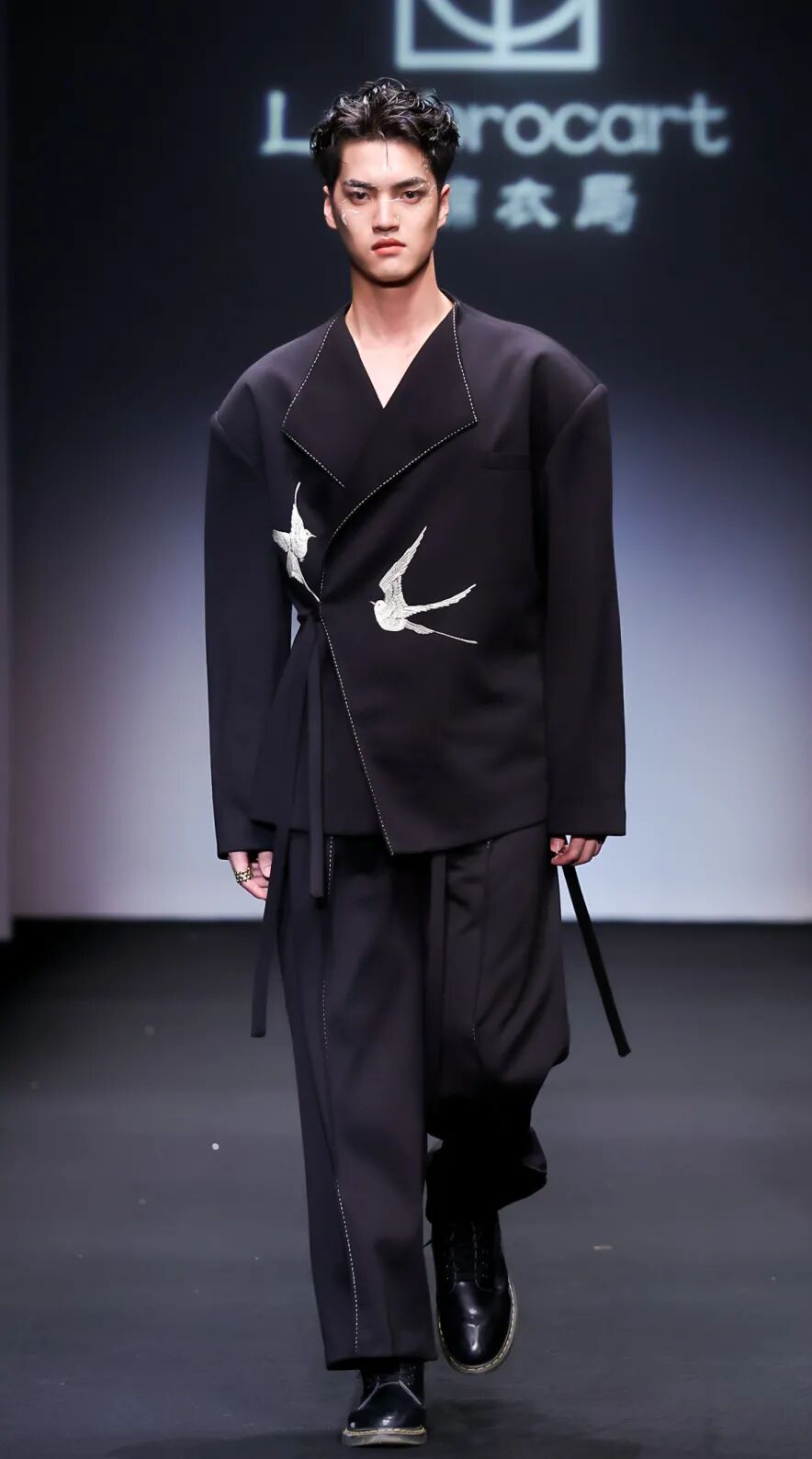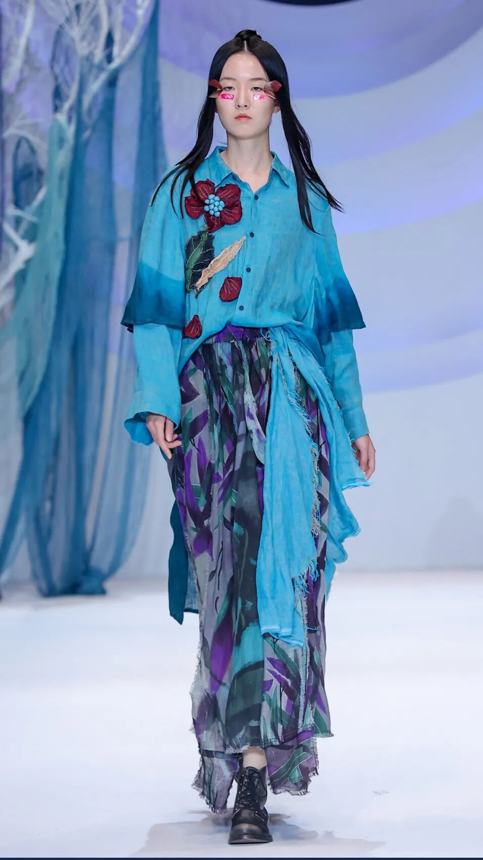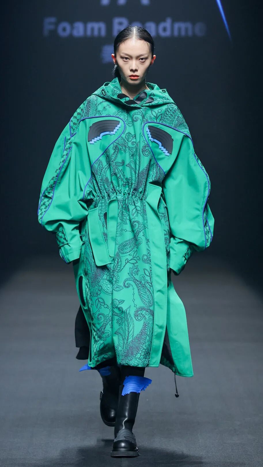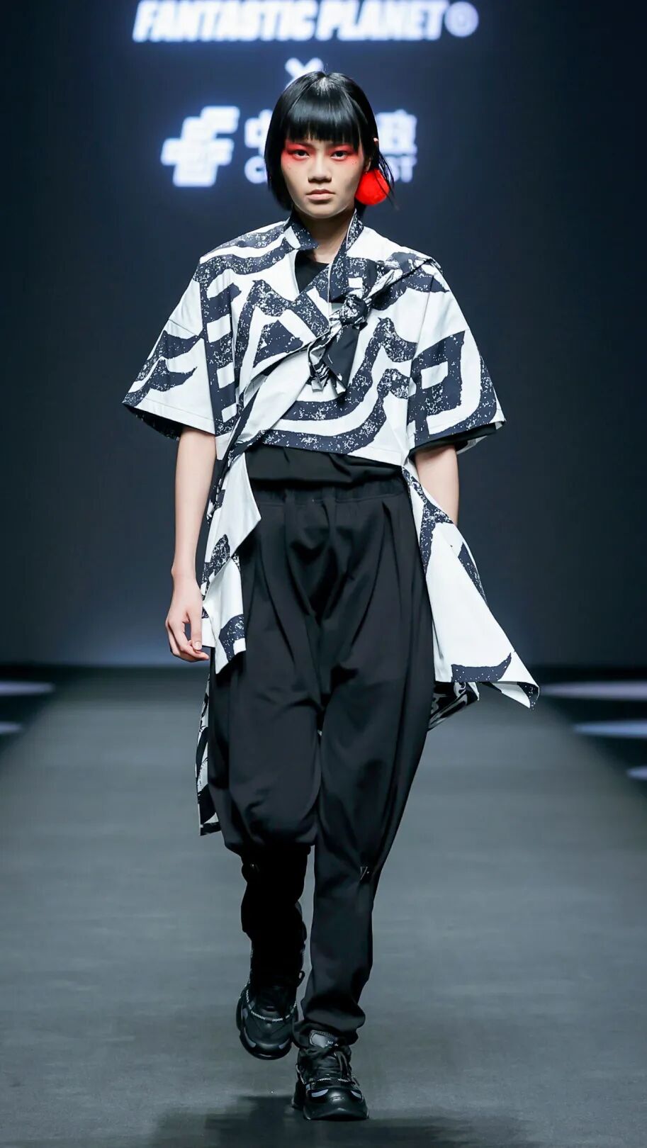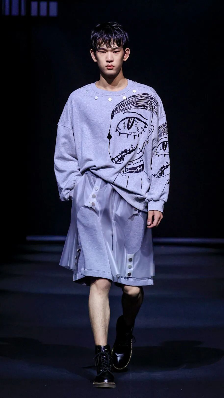 素白、Pastoral Poetry的中国风意味;沫兮、Hongwei s 、PATAVINITY天马行空的手绘、SUNGUITIAN和怪诞星球的贴布成图······设计师们将不同种类的图案像制作手账一般,把超过两种的图案种类组合在一起,这种拼接艺术在亮眼吸睛的同时也增添了趣味性。而且品牌们采用了多种工艺叠加组合来展现这种融合,充分的视觉效果让服装更具层次感。