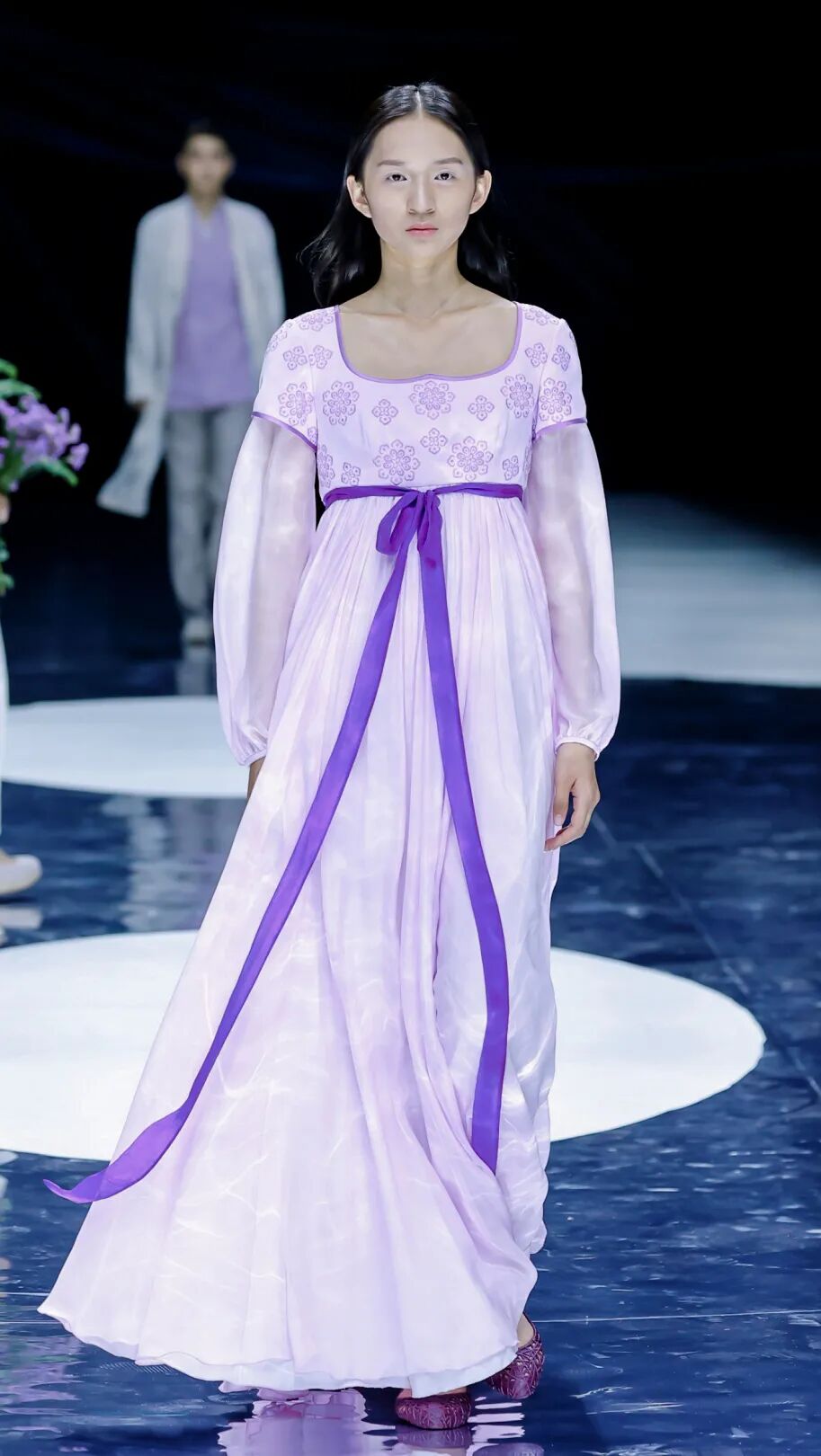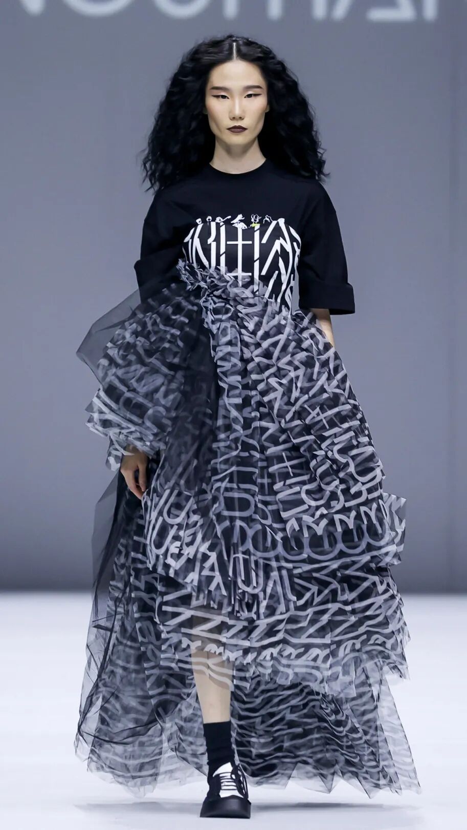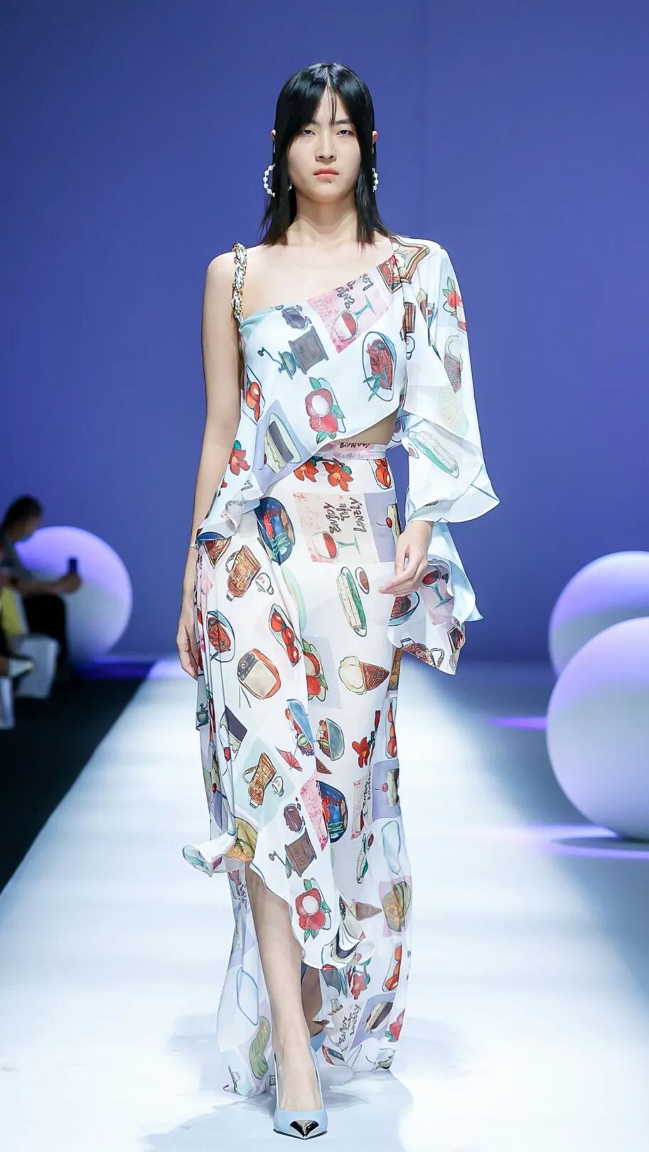 素白将名画印在真丝雪纺上引发强烈共鸣;兼持的国风作品叙述了一个完整故事;邓兆萍私人定制、Pastoral Poetry、NILDET则都选择了和发布主题契合的简笔涂鸦。把服装面料当作画布去创造,在体现个性的同时也增强了服装的艺术性。本季时装周出现了许多跨界联名作品,诸如DAMOWANG、Comunque Yang、XUNRUO熏若等,不管是与艺术家还是知名IP,都给服装注入了全新的原创力量。