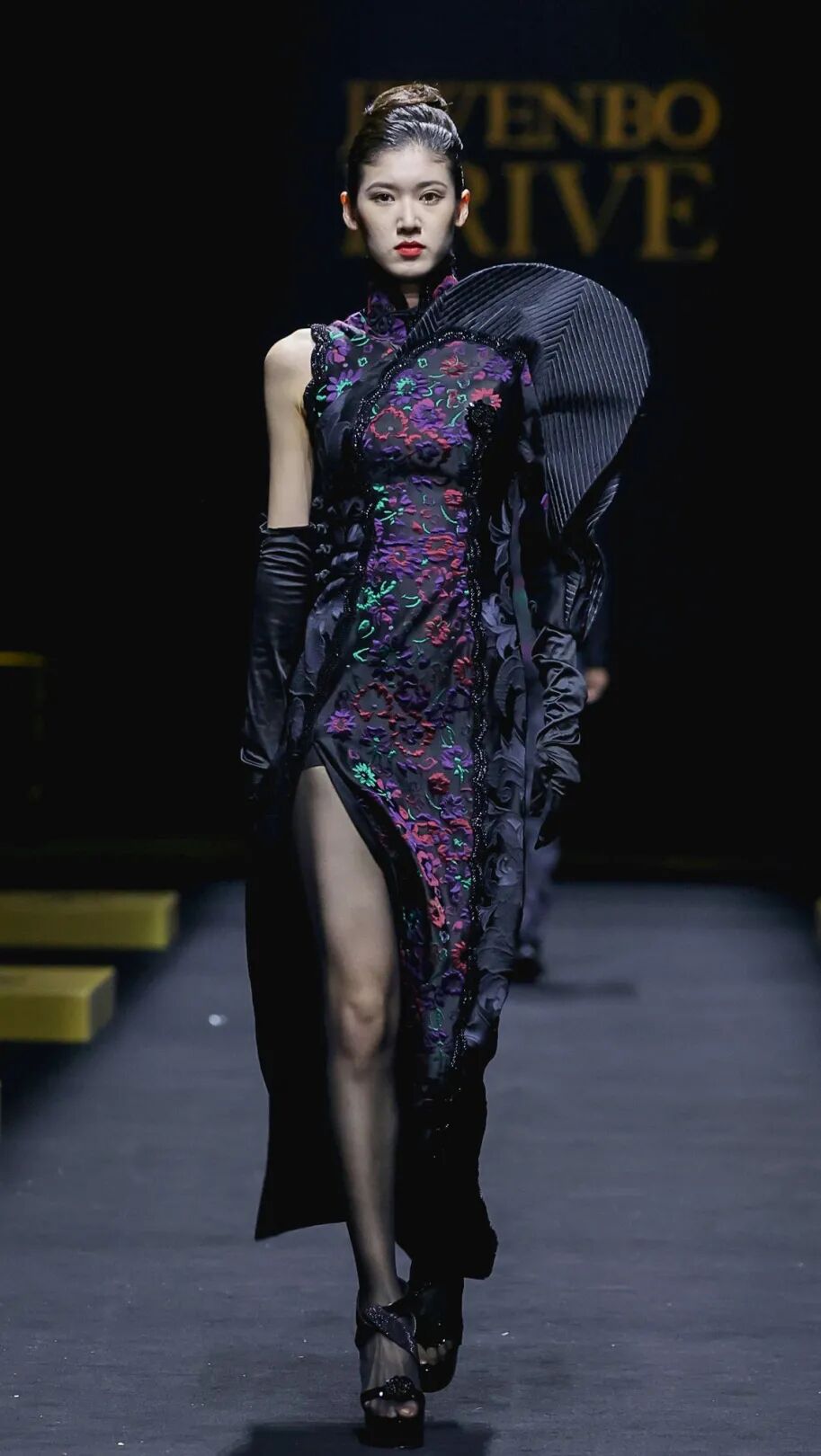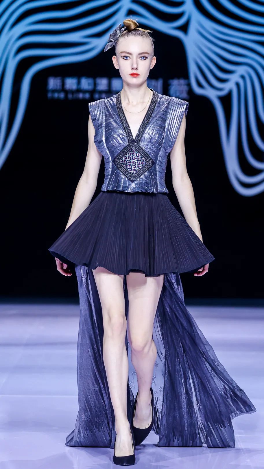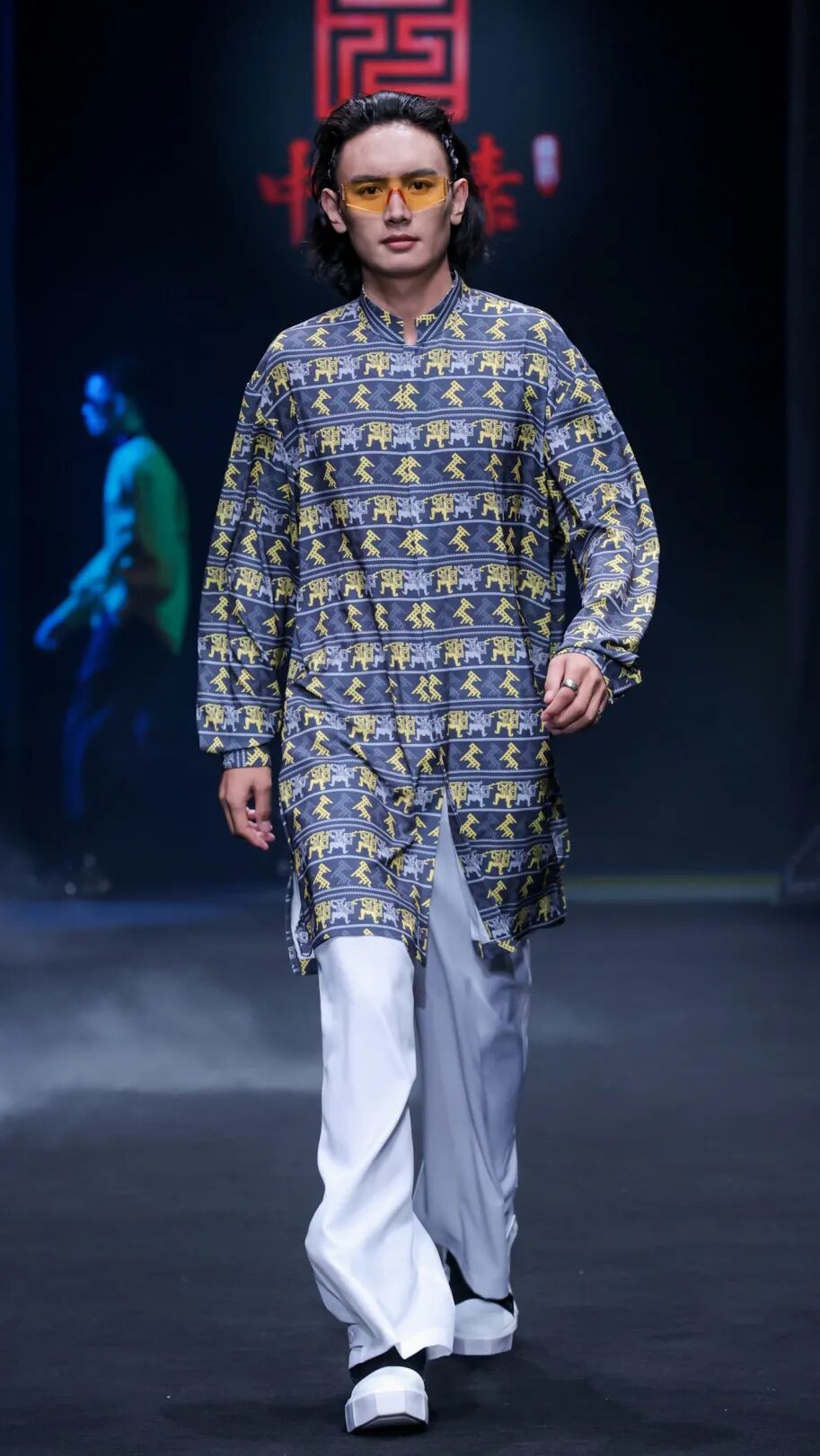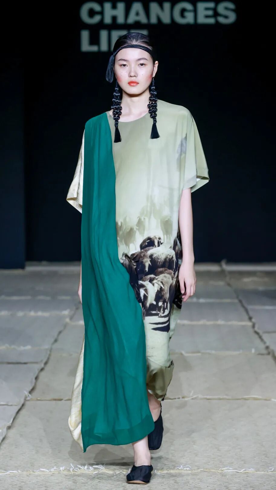多彩的少数民族纹样精美绝伦,独具辨识度,是民族服饰中无处不在的智慧表现,就算作为边饰点缀也仍旧吸睛。设计师们通过提炼简化,结合设计主题,谱写一篇篇“彩线上的史诗”。金景怡展示了鄂伦春族文化服饰秀;中元素将“瑶族元素”进行现代设计;蕃巴秀演绎别样藏族风情;天山集团带来新疆民族文化;A.1 FASHION CHANGES LIFE展示了哈萨克族牧民们的转场生活······JIWENBO PRIVE、TRACY CHU、MACKZHENG、新联和集团也在系列设计中融入民族风元素的图案。