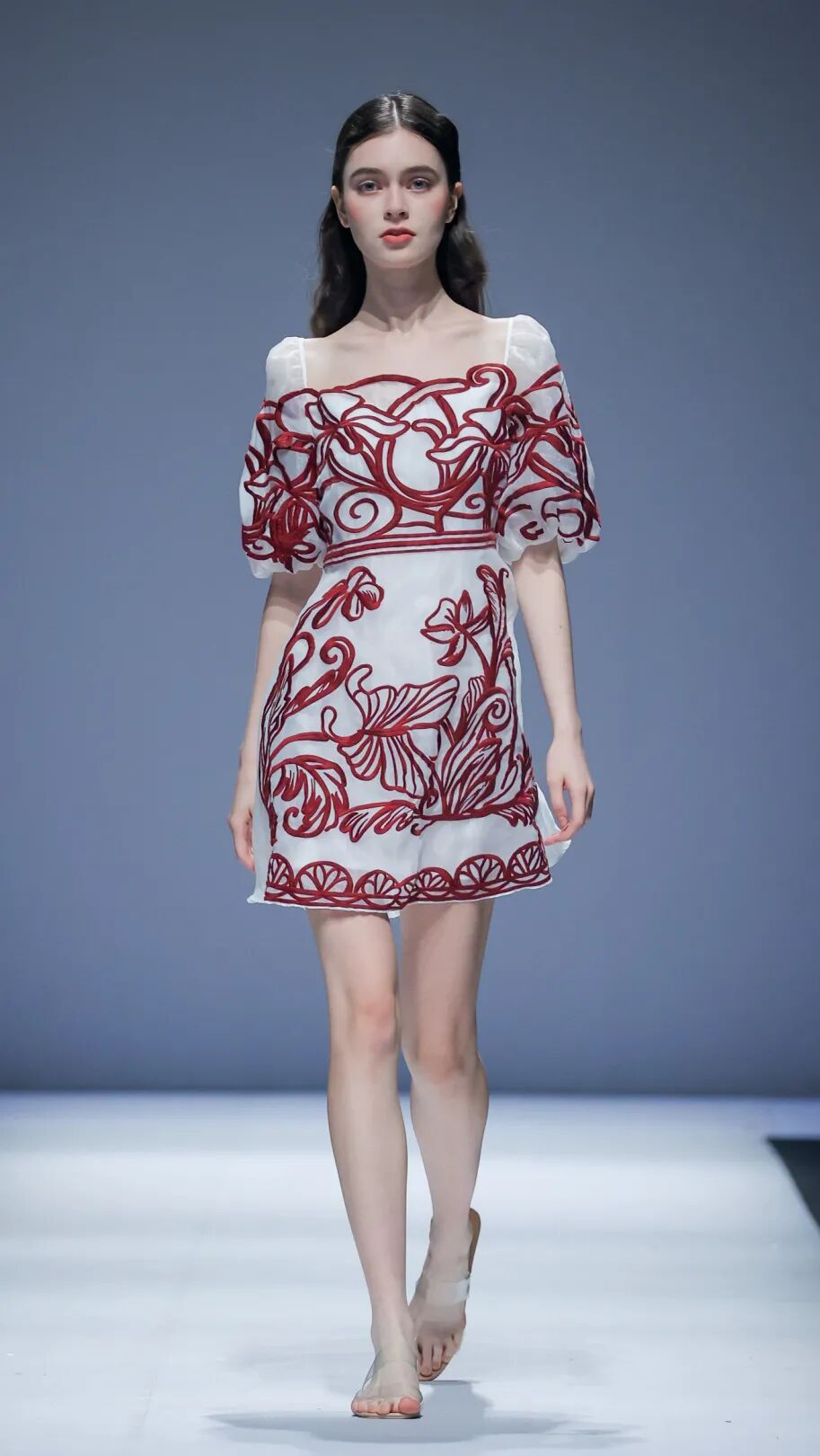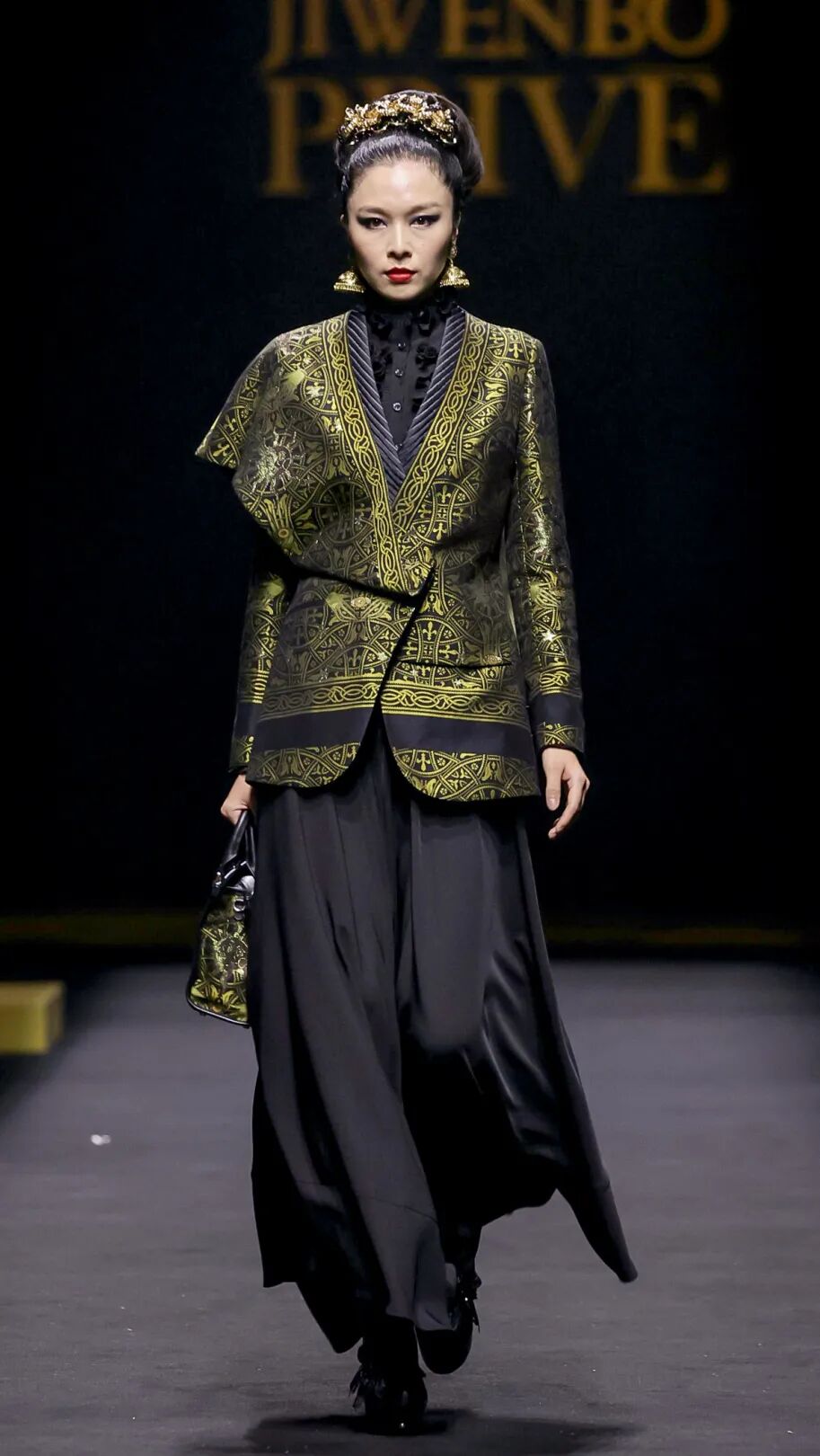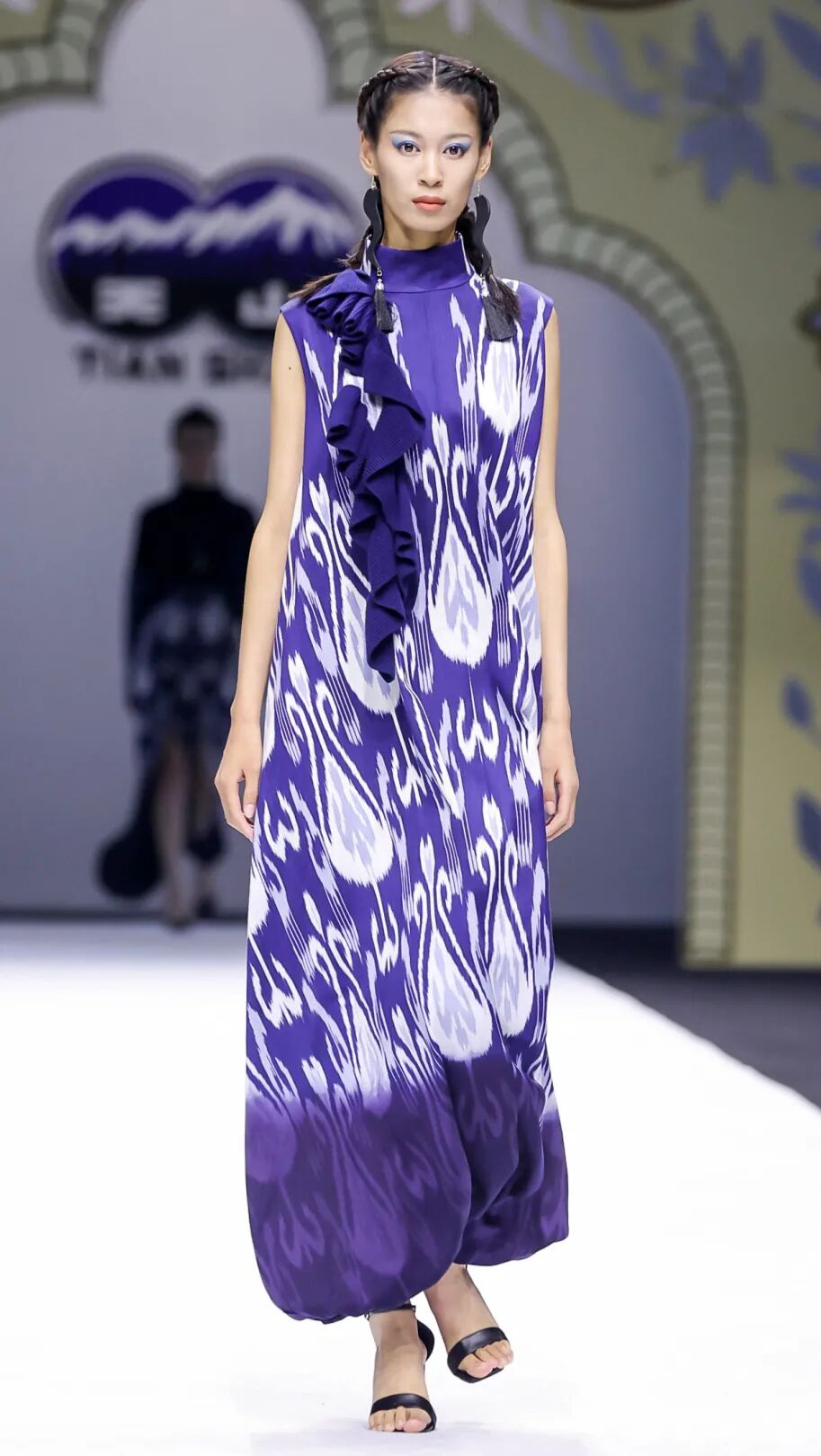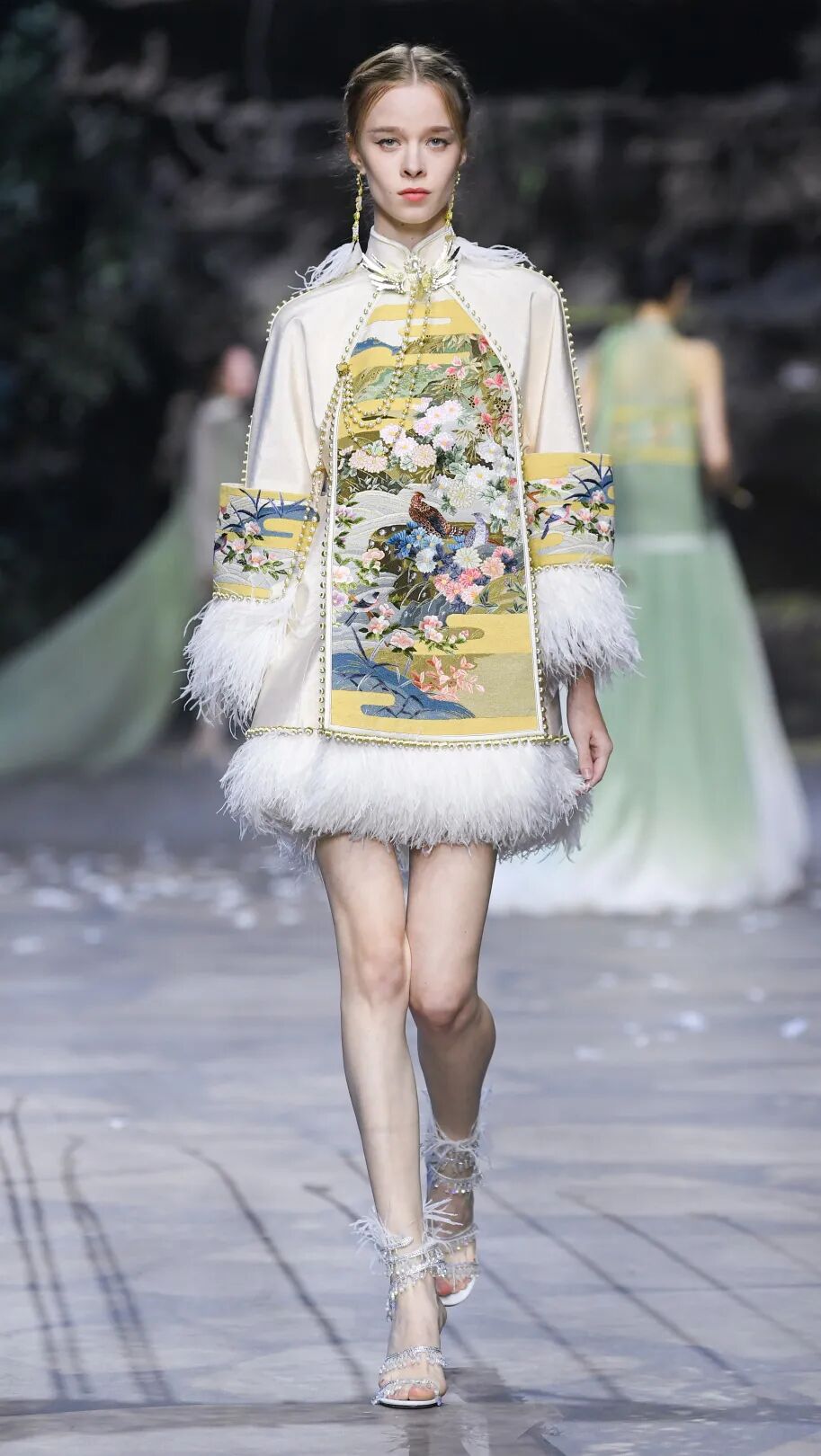 多彩的少数民族纹样精美绝伦,独具辨识度,是民族服饰中无处不在的智慧表现,就算作为边饰点缀也仍旧吸睛。设计师们通过提炼简化,结合设计主题,谱写一篇篇“彩线上的史诗”。金景怡展示了鄂伦春族文化服饰秀;中元素将“瑶族元素”进行现代设计;蕃巴秀演绎别样藏族风情;天山集团带来新疆民族文化;A.1 FASHION CHANGES LIFE展示了哈萨克族牧民们的转场生活······JIWENBO PRIVE、TRACY CHU、MACKZHENG、新联和集团也在系列设计中融入民族风元素的图案。