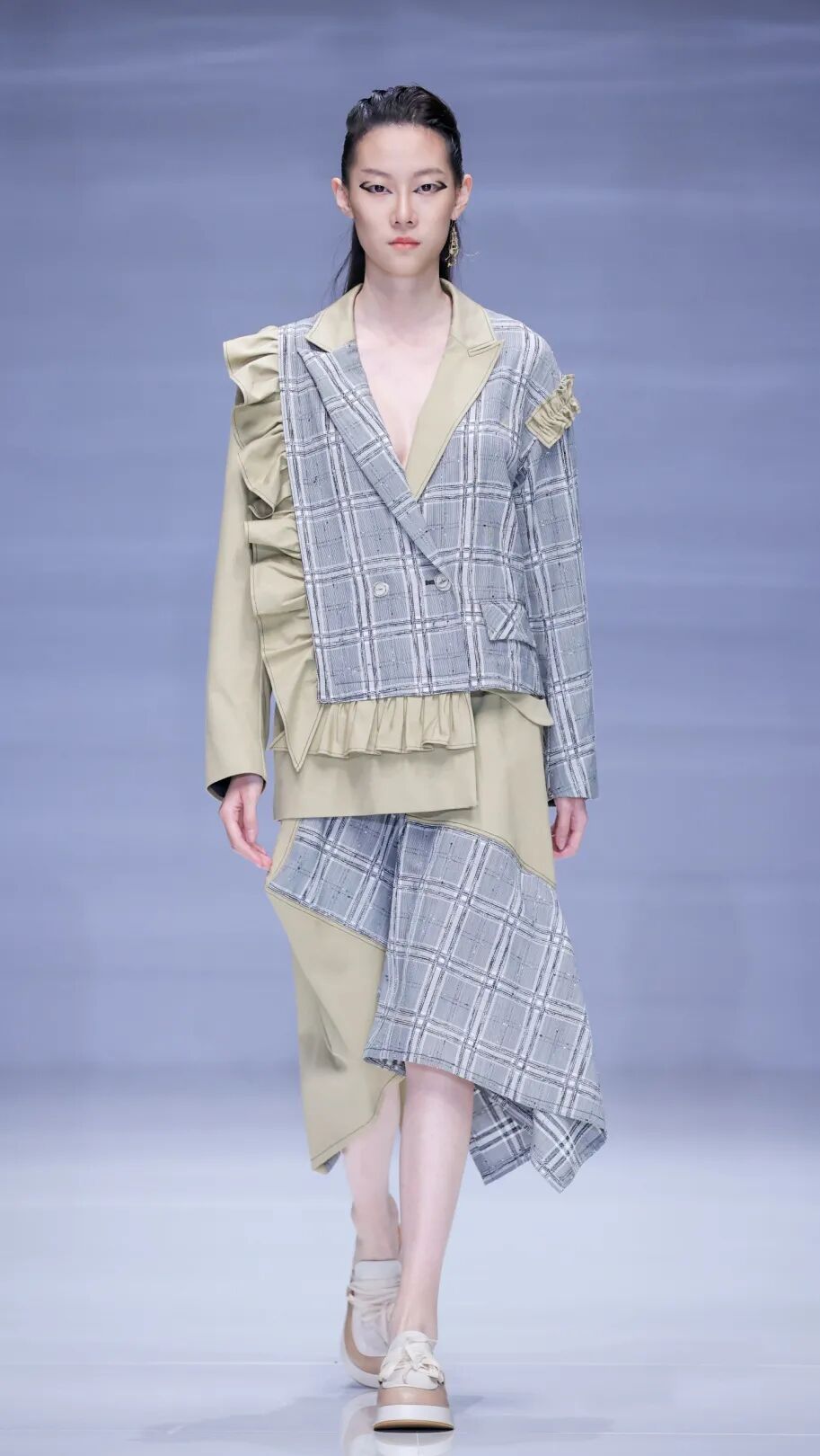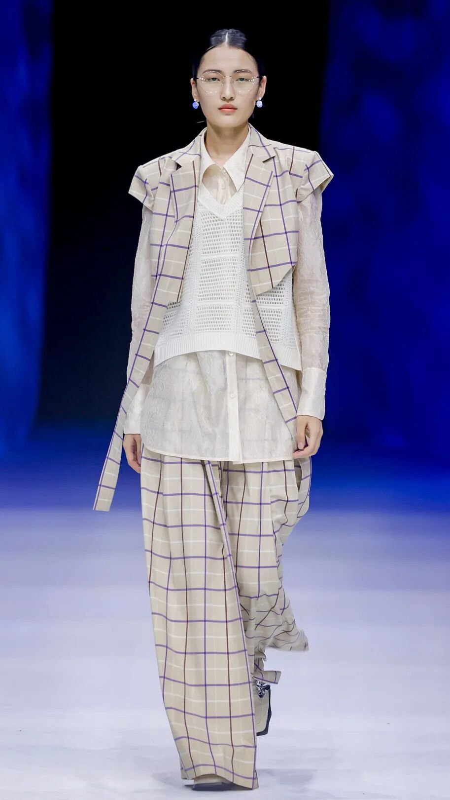 I-LA、CALICO COLLECTION、DEMAINZ的都市格纹;Celf Identity的英伦格纹、LIQINGWEI的休闲潮流格纹;DAMOWANG的棋盘格纹、蕃巴秀的民族风格纹、TRACY CHU、CHICCO MAO的粗呢格纹——格纹的魅力经久不衰。不止于传统的黑白方格,设计师们通过错位、变形、多色、元素组合等多种设计手法为传统格条纹图案注入新意,也为穿搭带来了更多可能。复古风潮、朋克精神、贵族气质、当代简约,在2022春夏中国国际时装周T台上,格纹展现出十足的时尚魄力。